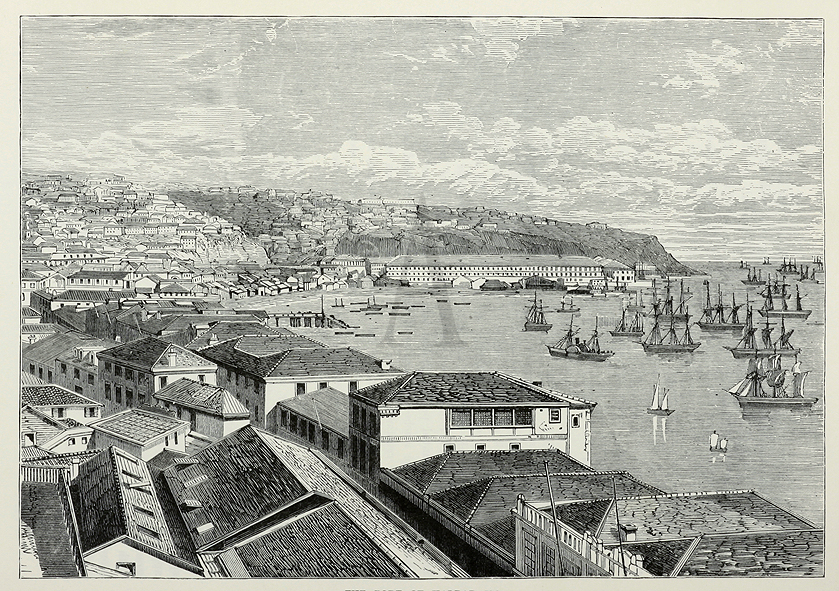 The Port of Valparaiso - Antique Print from 1888