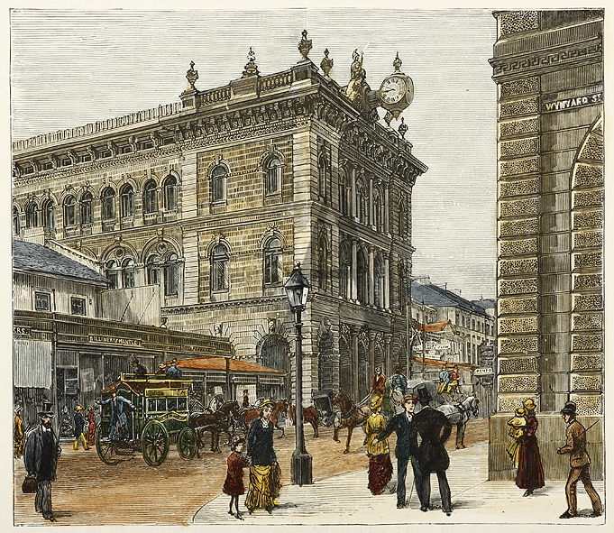 Colonial engraving of George Street looking at the GPO and where now is the beginning of Martin Place. The first section of Martin Place, was between George Street and Pitt Street, officially opened 1892, and named in honour of Sir … Read Full Description