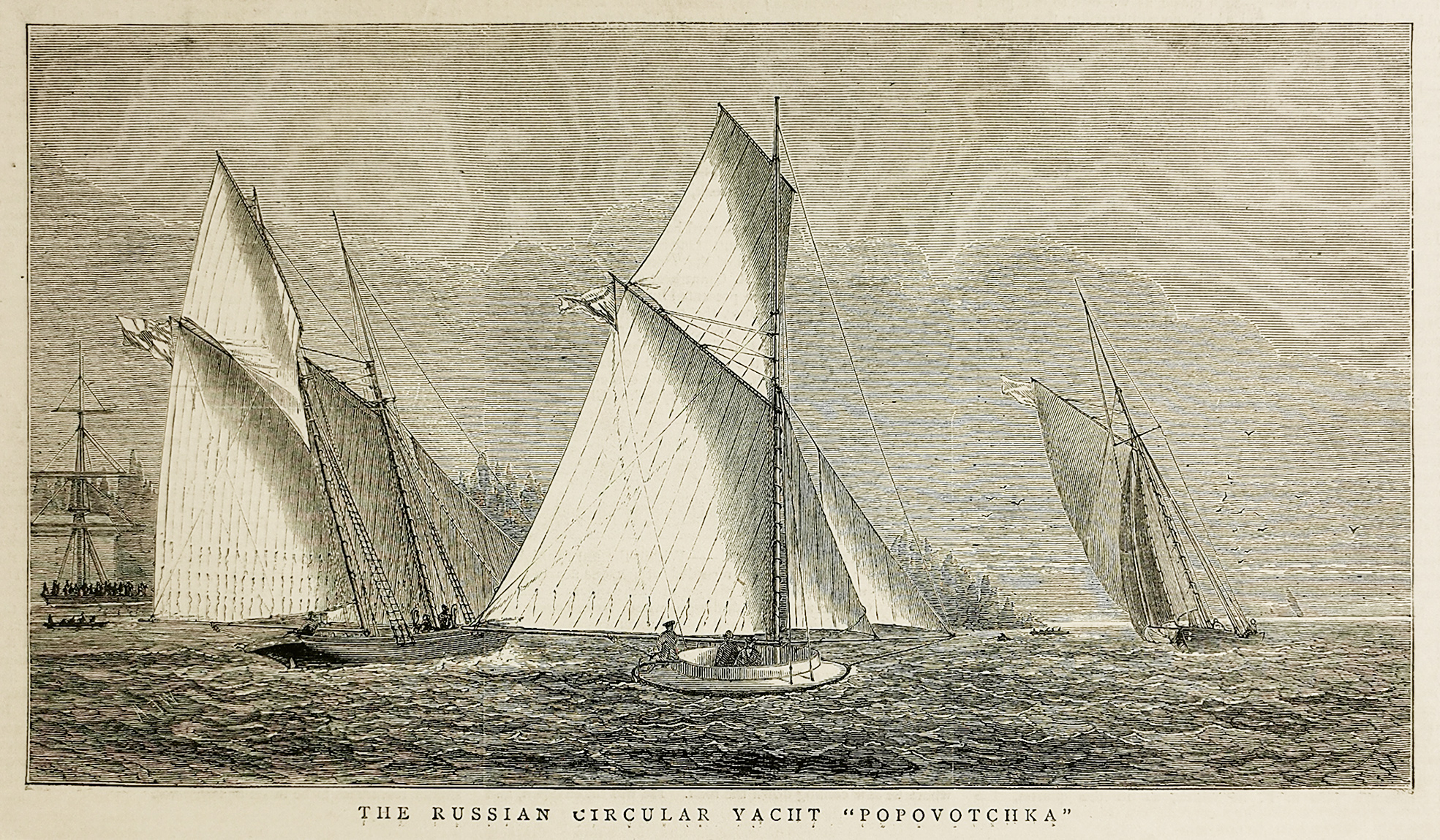 Engraving of the unusual circular Russian yacht. From the original edition of The Graphic.