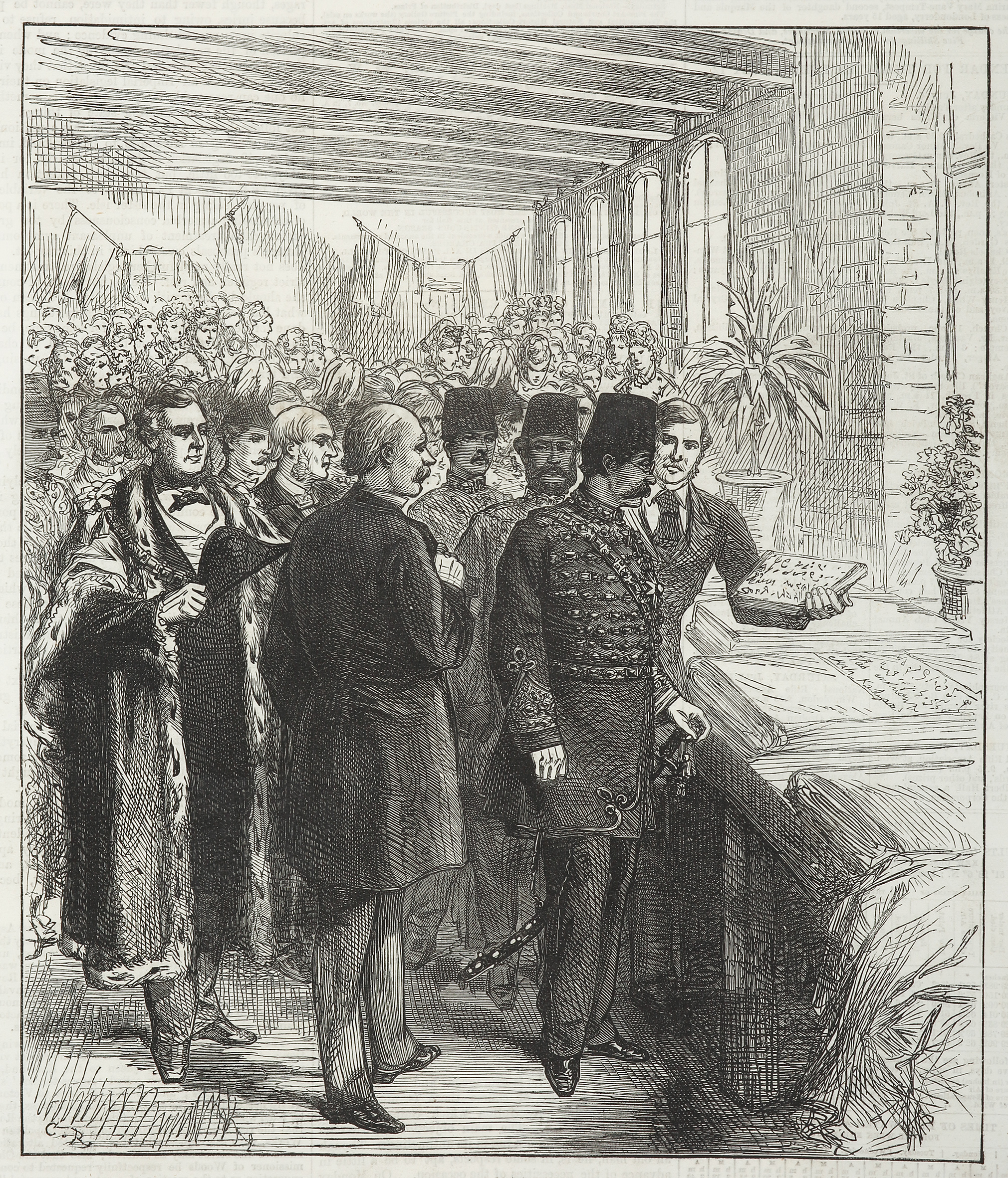 Early engraving recording the Sha of Persia’s (Iran) visit to Europe in 1873. From the original edition of the Illustrated London News.