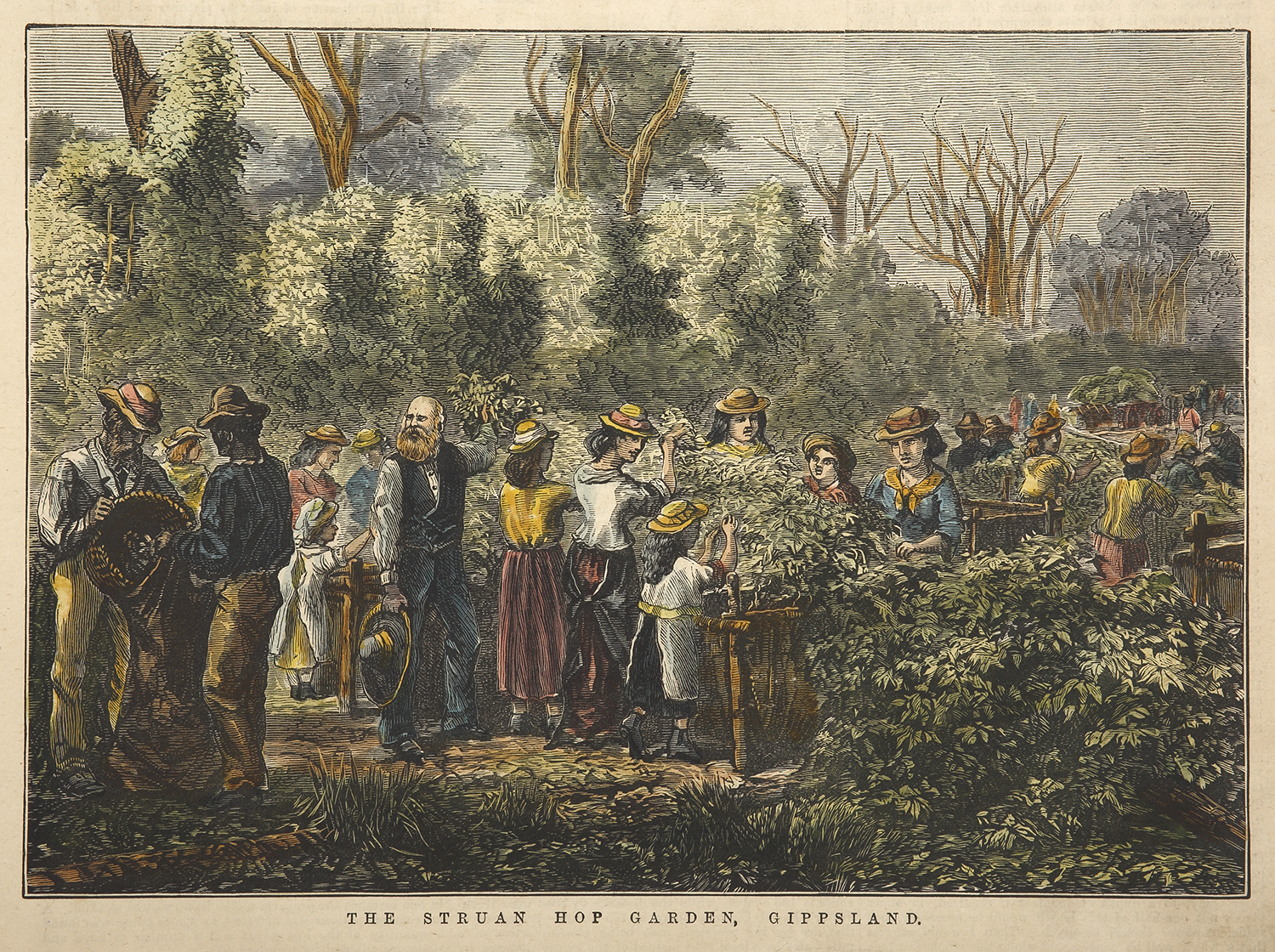 Scarce colonial engraved view of the Struan Hop Garden, Gippsland.