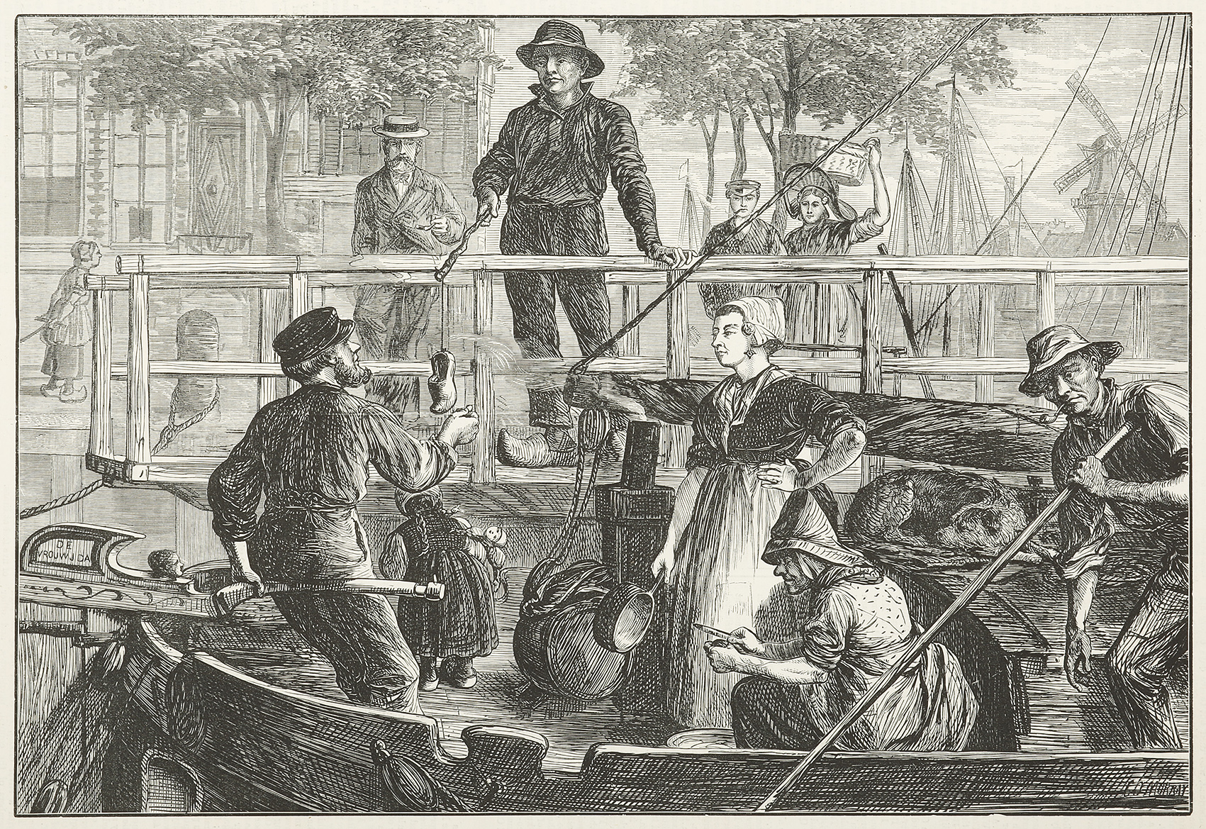 Engraving depicting a C19th scene of life on the canals in Holland.