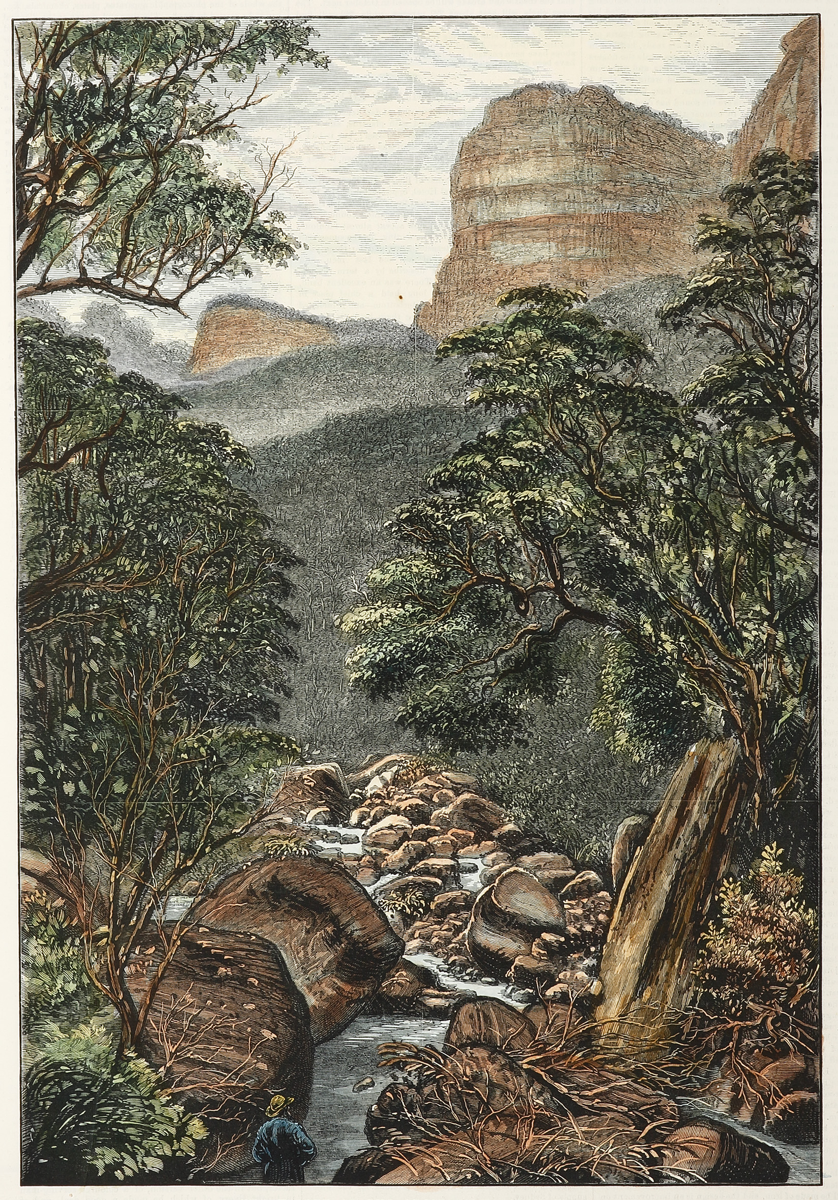 Colonial engraved view of Valley of the Grose. Charles Darwin visited the valley in 1836. From the original edition of the Australasian Sketcher. Collections: National Library Australia: Bib ID 914558 State Library New South Wales: REF1/MAV/FM4/9236-9239 State Library Victoria: PCINF AS … Read Full Description
