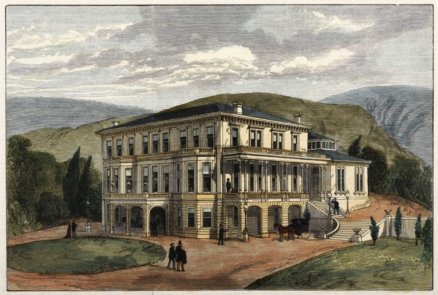 Rare early image of this building. New Zealand’s largest residential Club which was founded in December 1841. From the original edition of the Australasian Sketcher.