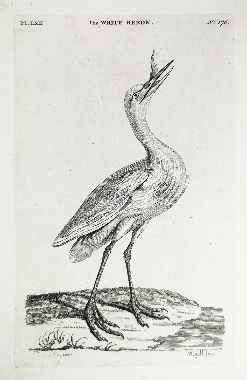 C18th engraving of the White Heron. From Pennant, British Zoology.