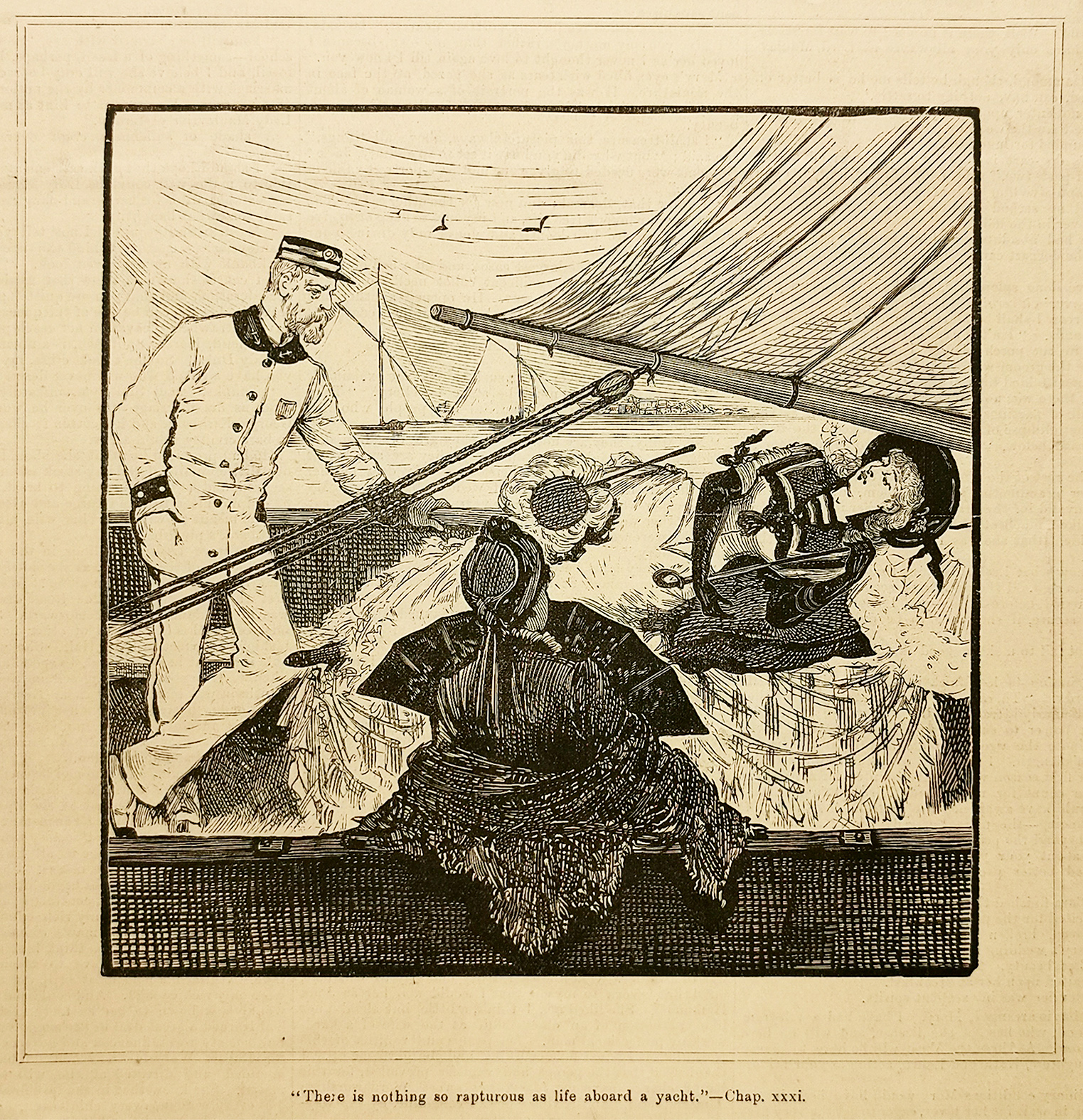 Engraving of an idyllic yacht cruise. From the original edition