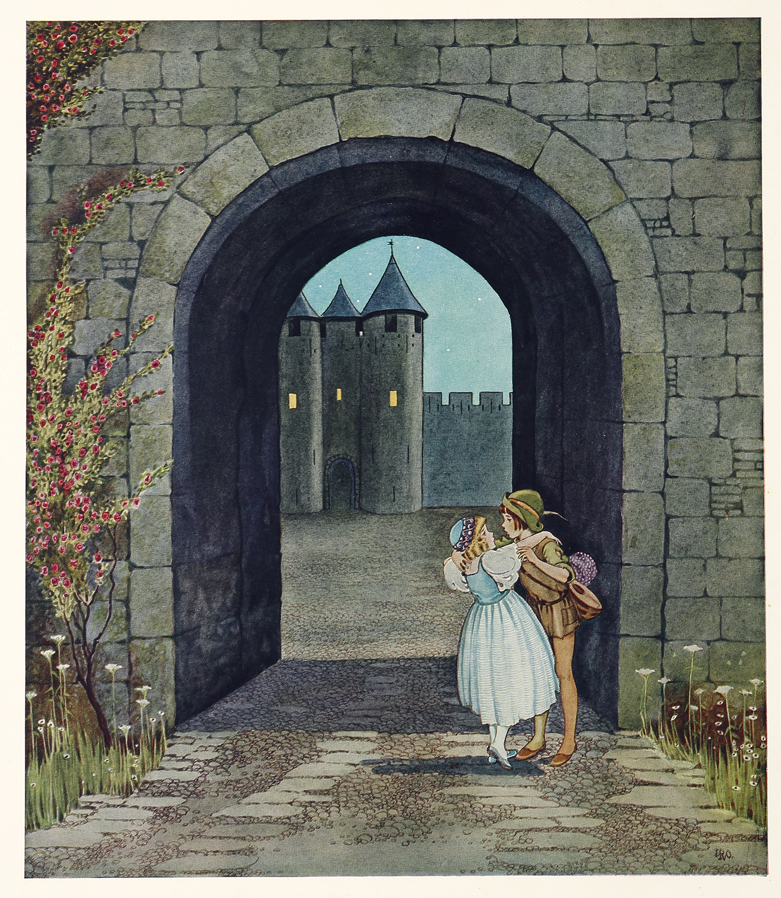 "They kissed Farewell at the chateau gate" - Vintage Print from 1931