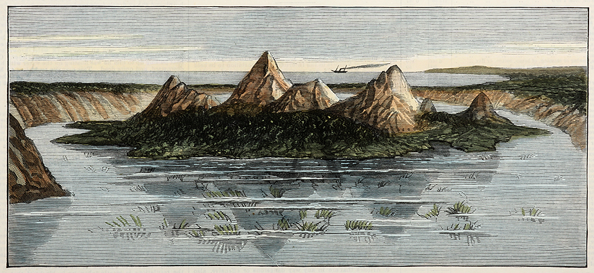 Colonial engraving of Tower Hill. The first confirmed sighting of Tower Hill by Europeans was by French explorers sailing with Captain Baudin aboard Geographe in 1802. Matthew Flinders sailed east along the southern coast of Australia and on 20 April 1802 in the ship’s log referred to “Peaked Hill Position uncertain”, which may refer to Tower Hill.