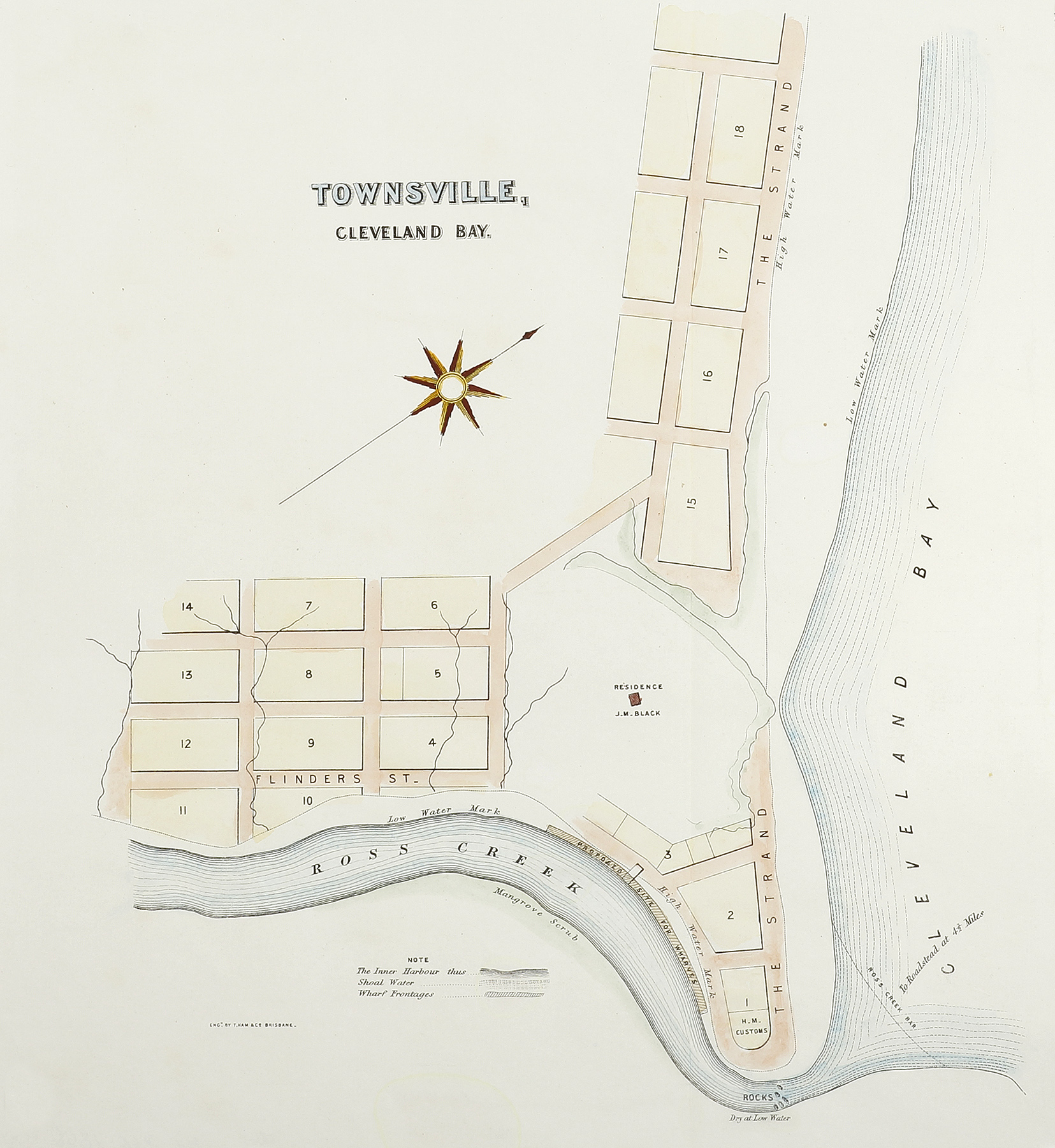 Rare plan of Townsville harbour by Thomas Ham (1821-1870) printed in  1866, the same year Townsville was declared a municipality.