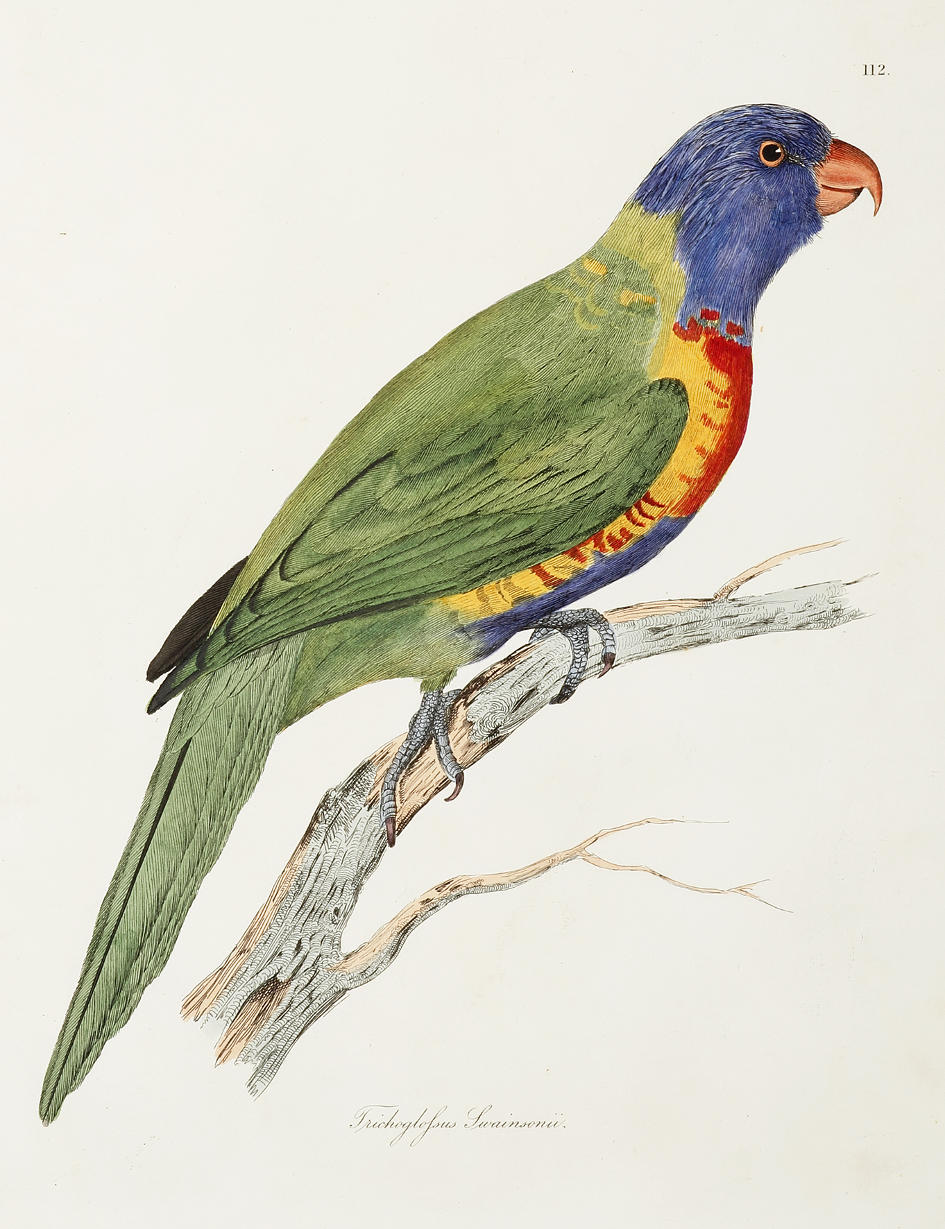 Superb hand coloured engraving of the Rainbow Lorikeet.
