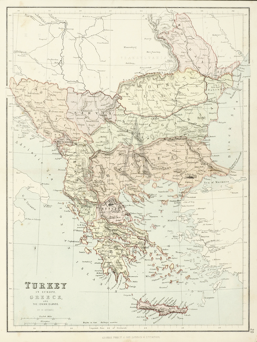 Turkey in Europe, Greece, and the Ionian Islands. - Antique Map from 1878