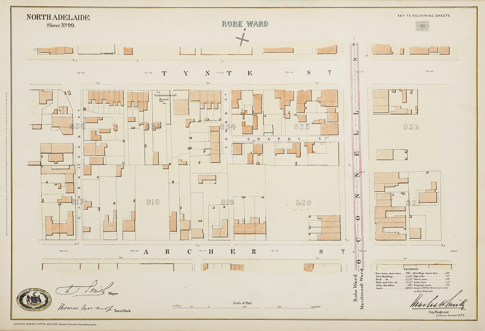 Very detailed plan of Adelaide extending from Tynte Street to Archer Street and O’Connell Street by Charles William Smith.
