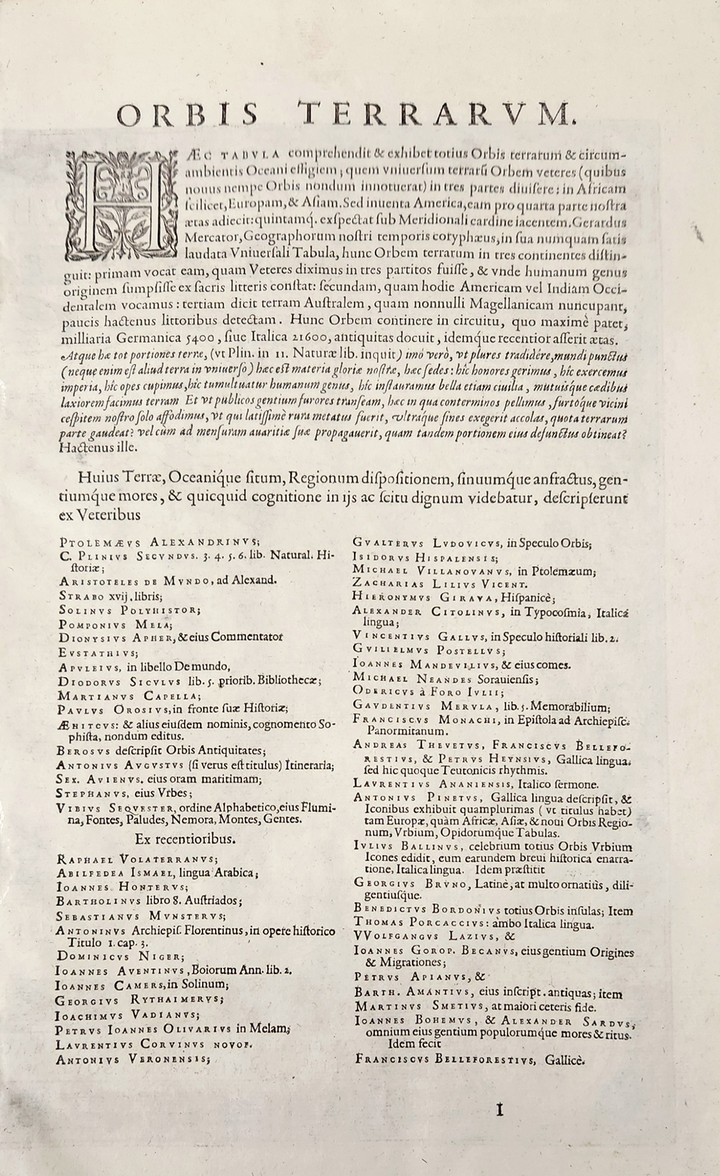 The Theatrum included a section called Catalogus Auctorum, which listed the thirty-three cartographers referred to by Ortelius and the eighty-seven geographers known to him at the time.