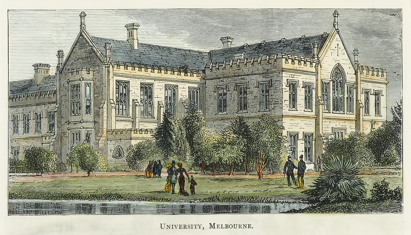 Scarce c.19th engraving of the University of Melbourne.