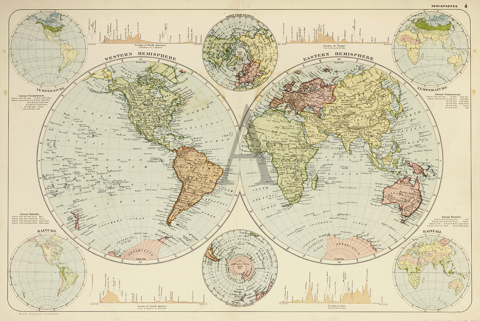 Bacon was a publisher, map seller, bookseller and lithographer. He came to England in 1862 initially as an agent for the American Atlas Company. Eventually he took over the James Wyld map business in 1893.