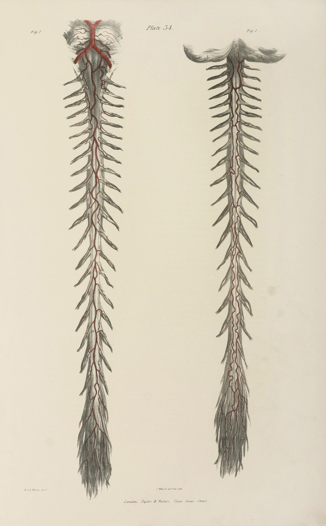 From: Quain & Wilson, A Series of Anatomical Plates, comprising: The Muscles of the Human Body. – The Vessels of the Human Body. – The Nerves of the Human Body. – The Viscera of the Human Body. – The Bones and Ligaments of the Human Body. London: Taylor and Walton, 1836- 1842.
