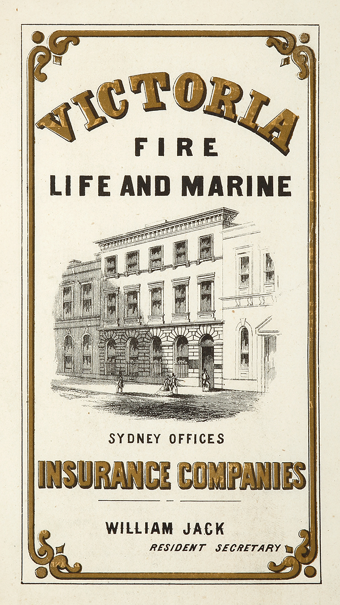 Wonderful colonial advertisement printed with gold lettering by S.T. Leigh of Victoria Insurance building.