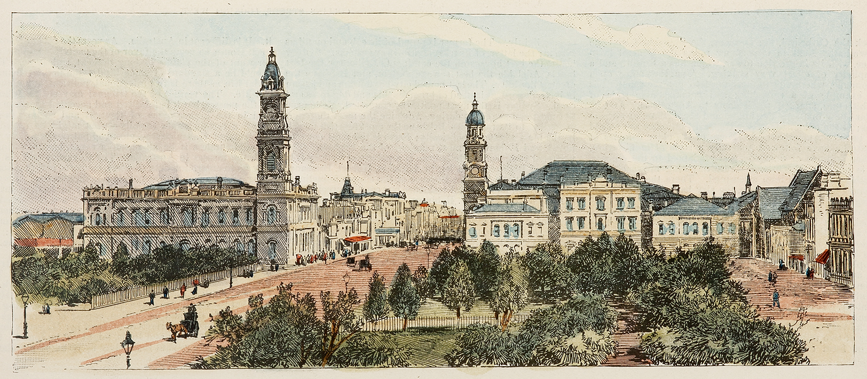 Victoria Square and King William Street, Adelaide, South Australia. - Antique Print from 1891