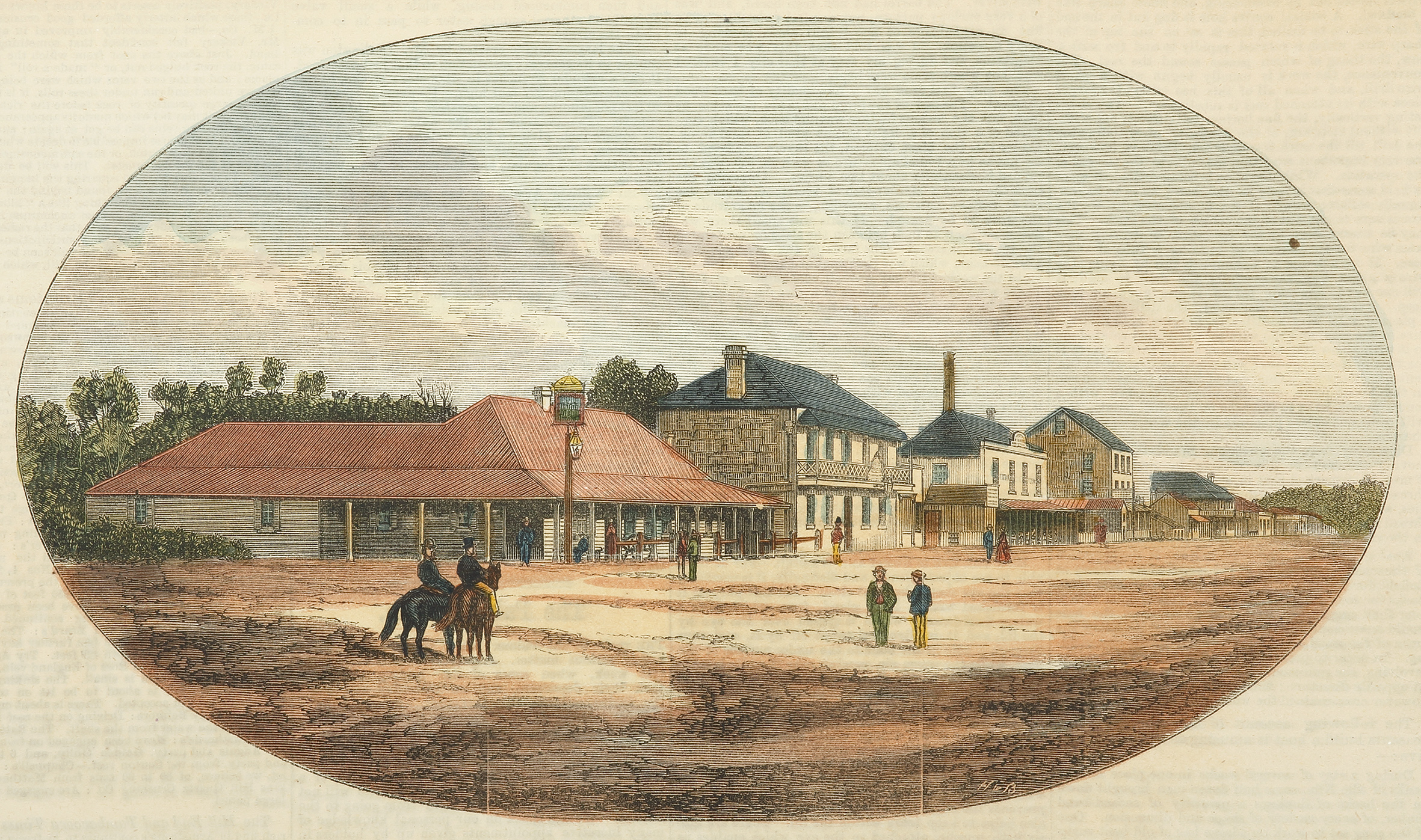 Very rare colonial engraved view of Dubbo set in an oval format. From the original edition of the Town & Country Journal. Collections: National Library Australia: Bib ID 41861 State Library New South Wales: 1870-1919 TN83A State Library Victoria: RARENSL N.S.W. … Read Full Description