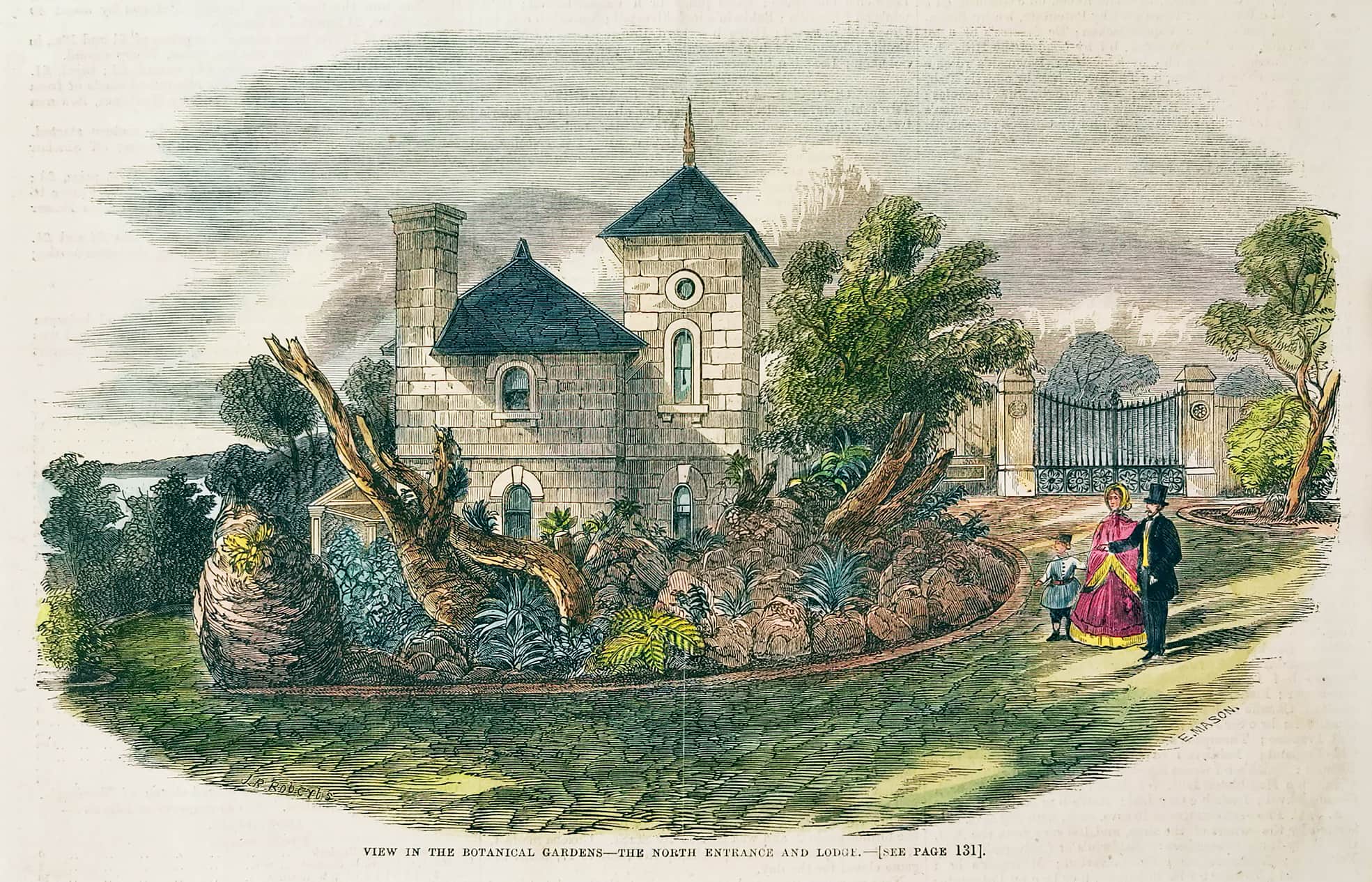 View in the Botanical Gardens-The North Entrance and Lodge.