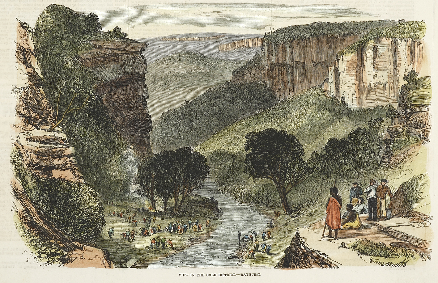 Scarce colonial engraving of the rush to the Bathurst to Ophir goldfields after the discovery gold in 1851. From the original edition of the Illustrated London News.