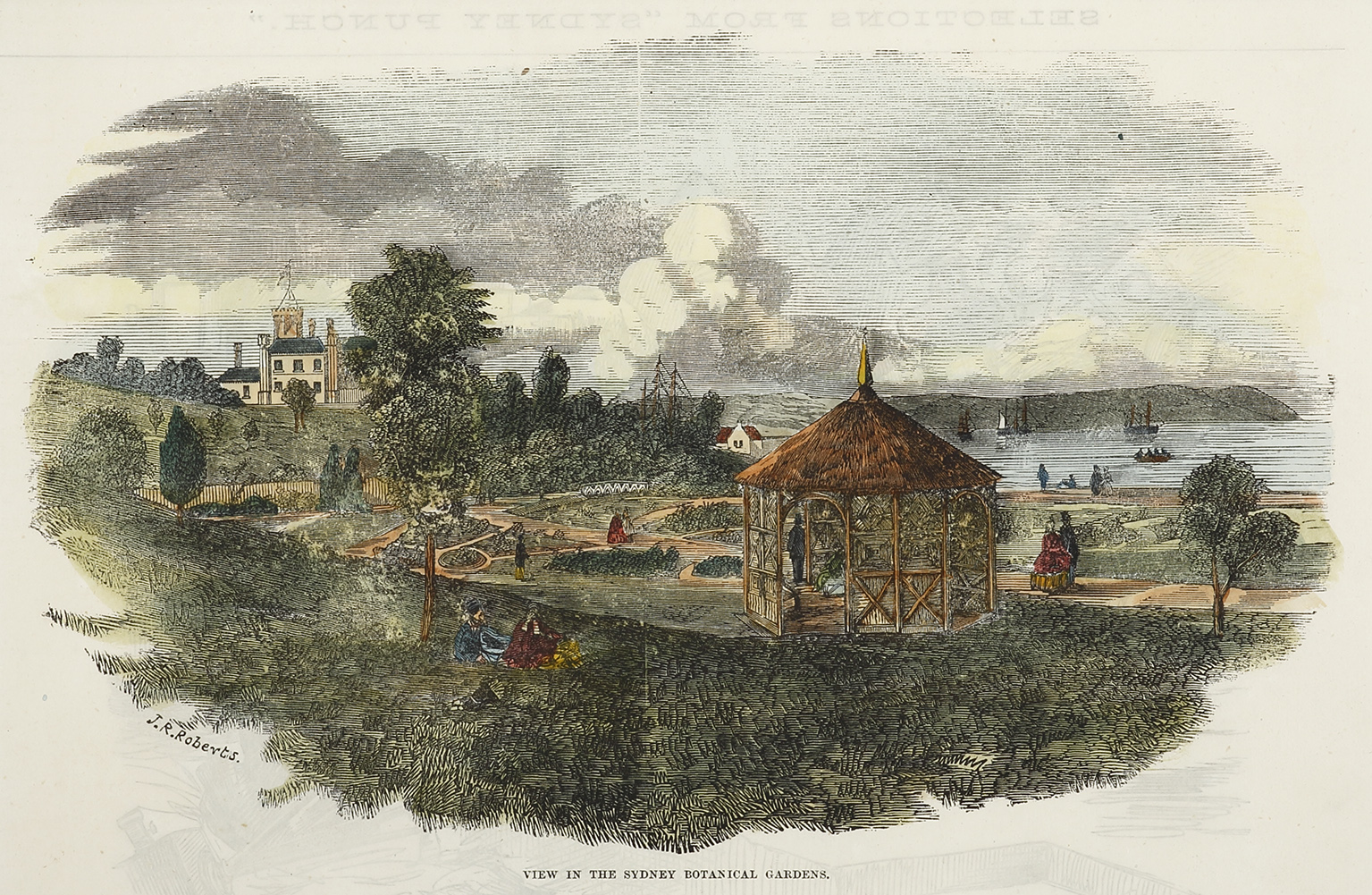 Rare early engraving of the Sydney Botanic Gardens. From the original edition of The Illustrated Sydney News. References: Gibbs & Shallard. Illustrated Sydney News. ISSN 2203-5397. Collections: State Library New South Wales: F8/39-40 State Library Victoria: PCINF SLVIC=1853-1872 National Library Australia: … Read Full Description