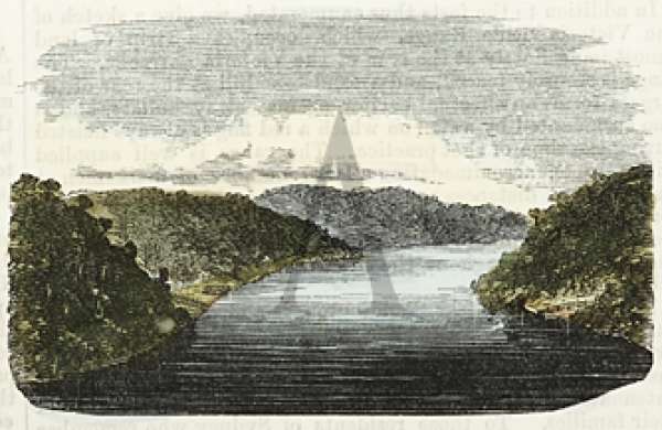 Rare, miniature c.19th hand coloured engraving of the Government quarry which were situated on the Georges River directly opposite East Hills.