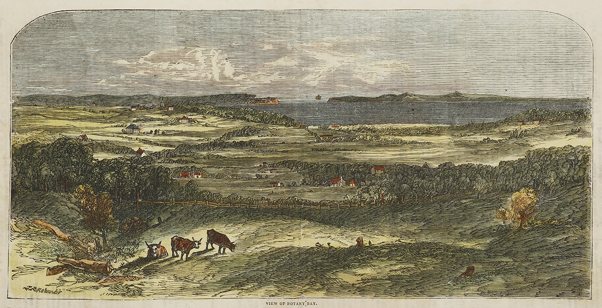 Rare, early engraving of Botany Bay in 1854.