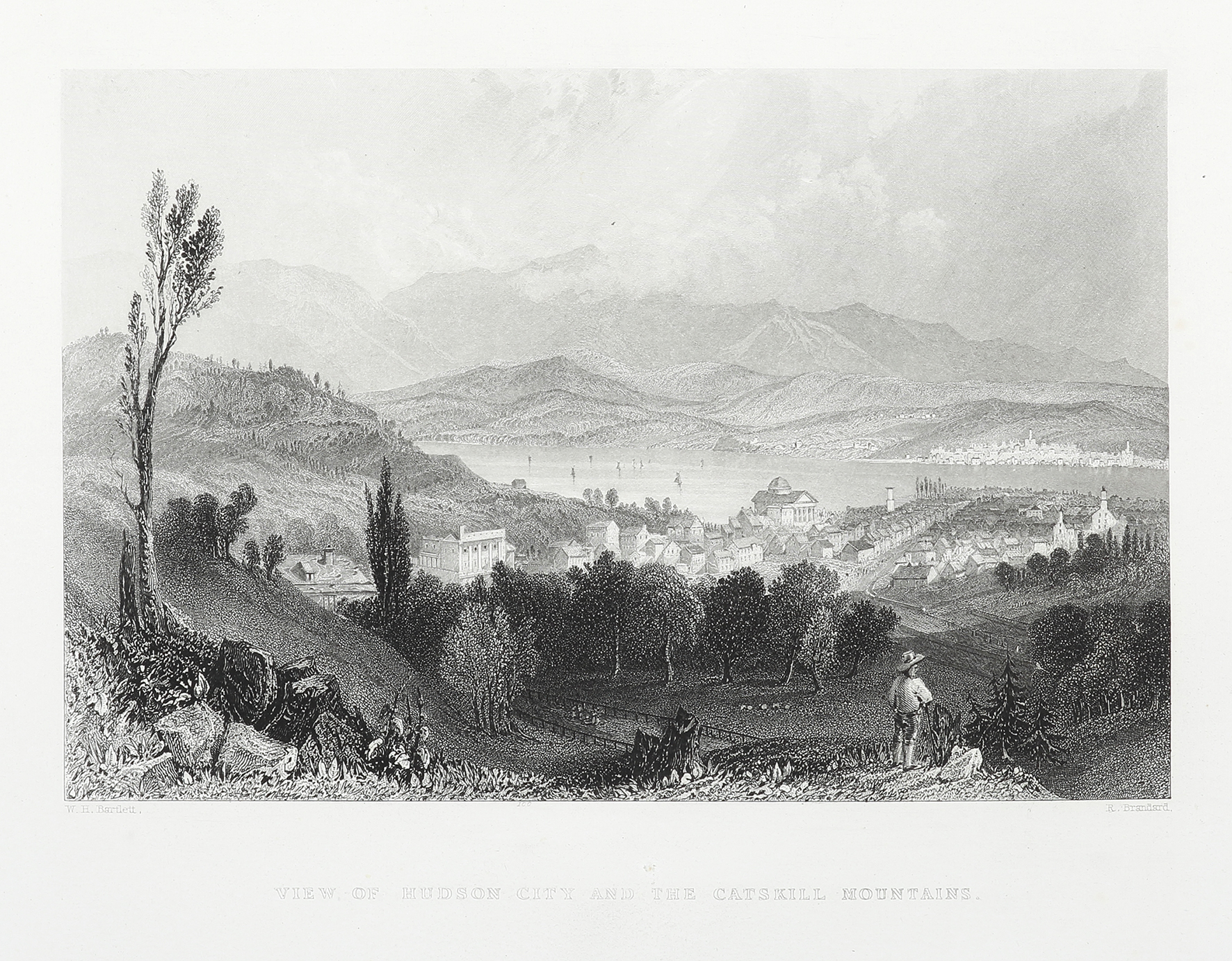 Scarce c.19th engraved view of Hudson City and the Catskill Mountains. From; Bartlett, W. American Scenery; Or, Land, Lake and River Illustrations of Transatlantic Nature.