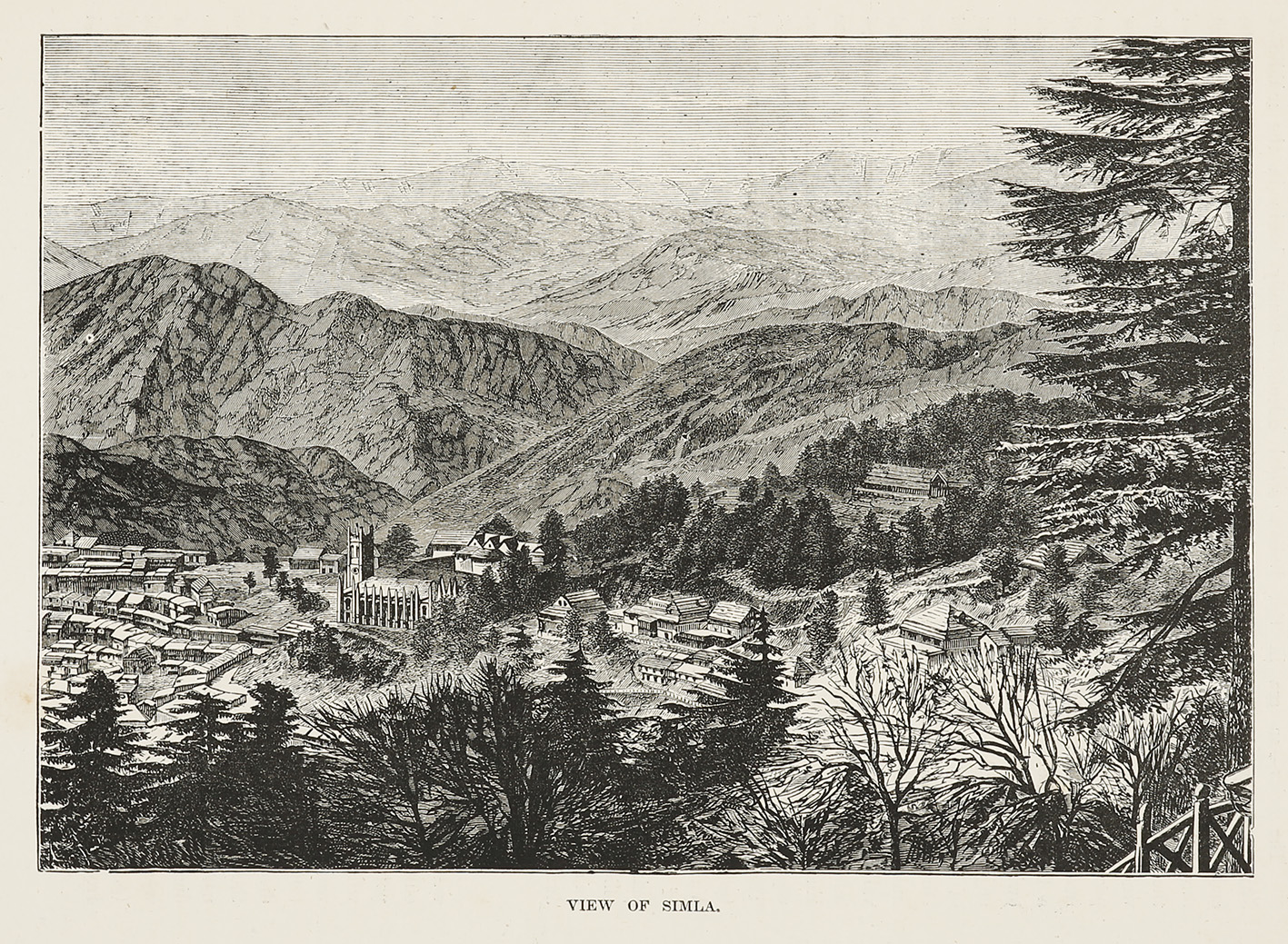 Scarce c.19th engraved view of Simla (now officially Shimla), the beautiful colonial-era capital of Himachal Pradesh, India, nestled in the Himalayas, famous as the former summer capital of British India.