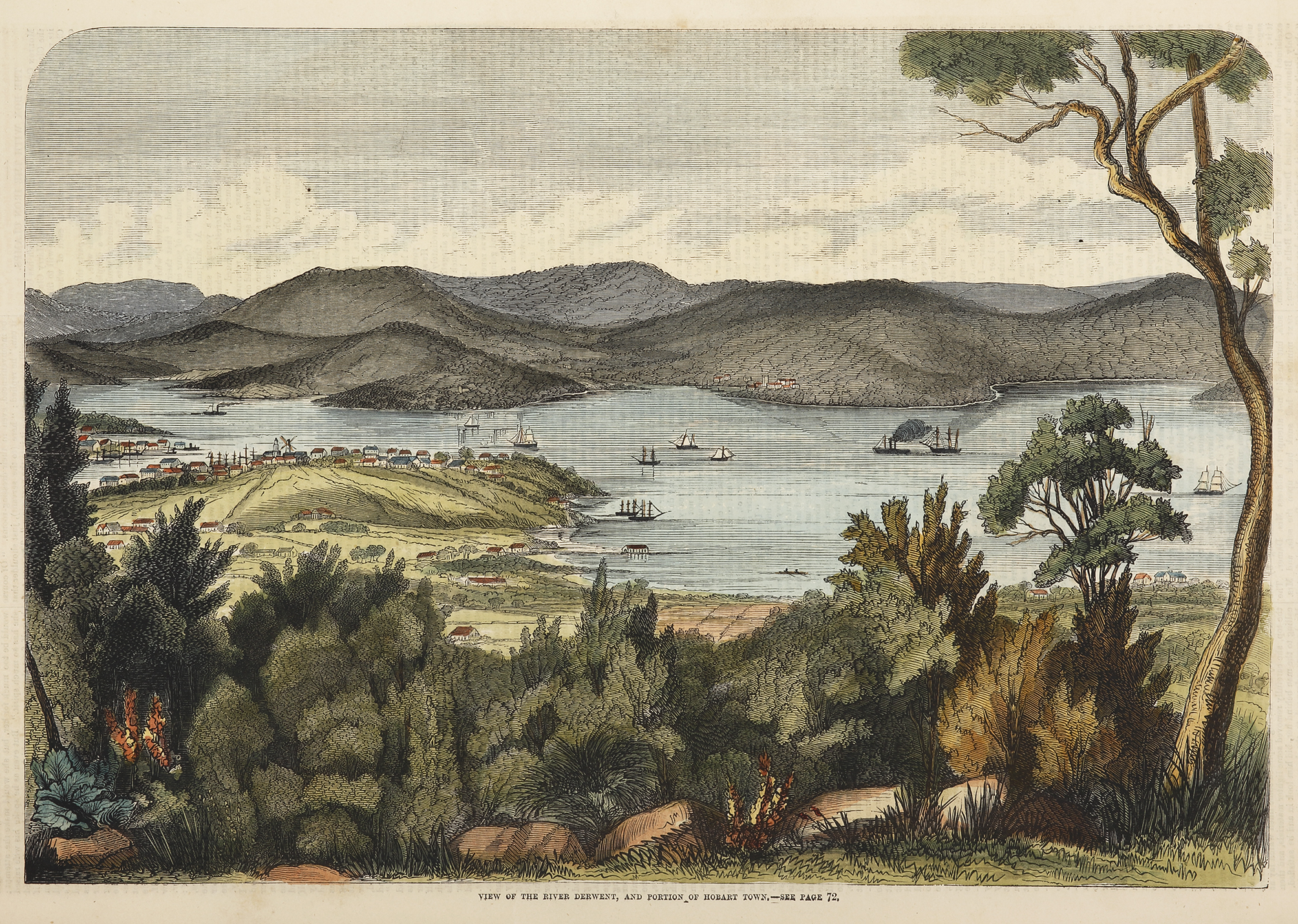 Rare colonial engraving of Hobart. From the original edition of the Illustrated Sydney News.