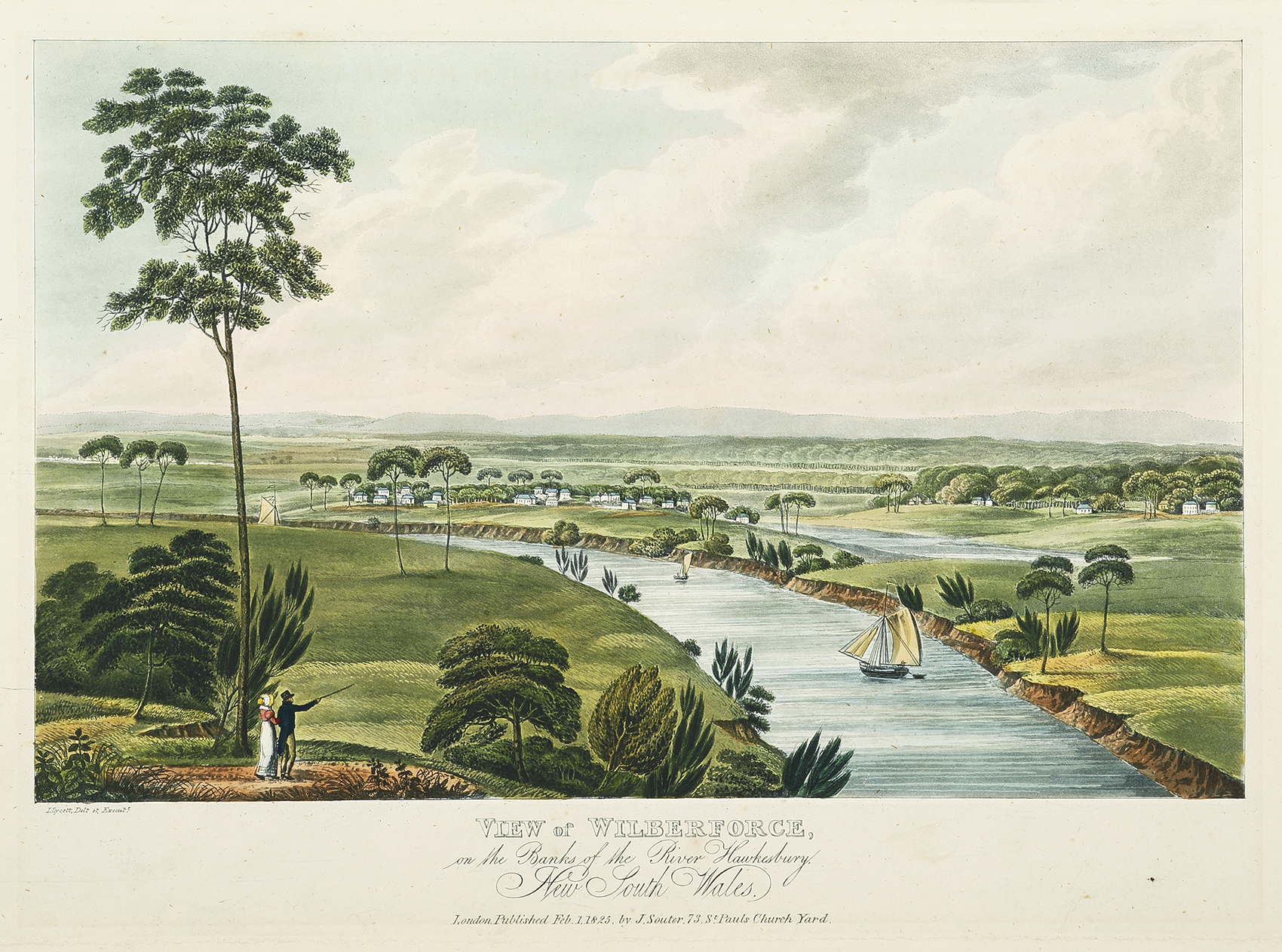 Rare early c.19th aquatint view of Wilberforce one of the original towns established by Governor Lachlan Macquarie and named after William Wilberforce (1759-1833).