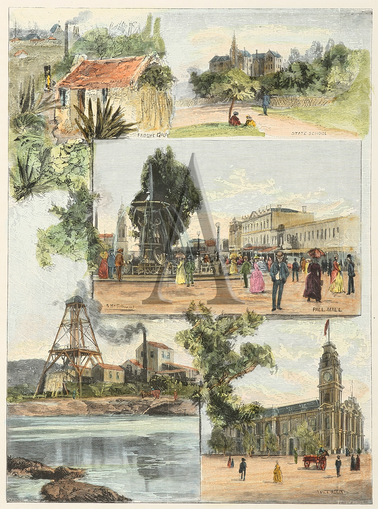Colonial engraved collage views of Bendigo.
