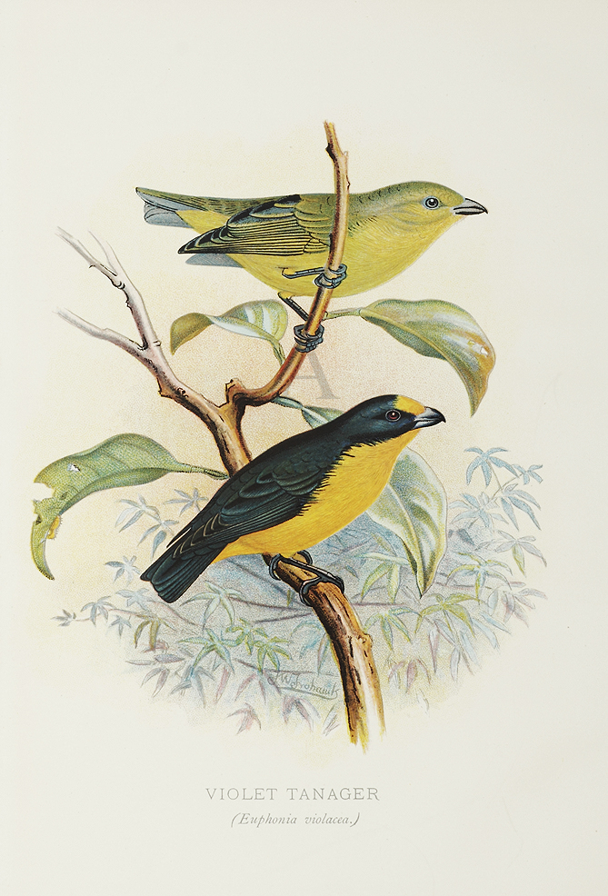 Scientific name: Euphonia violacea. This bird is an inhabitant of Guiana, Trinidad, the Lower Amazons, and South-eastern Brazil.