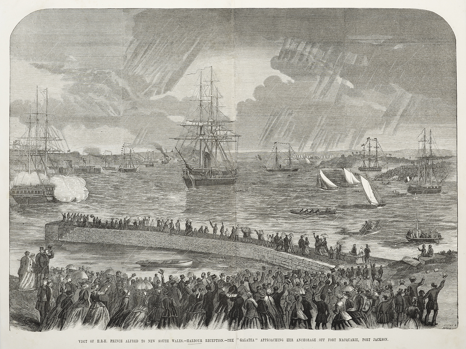 Rare engraving depicting the reception for the Duke of Edinburgh in Sydney in 1868.