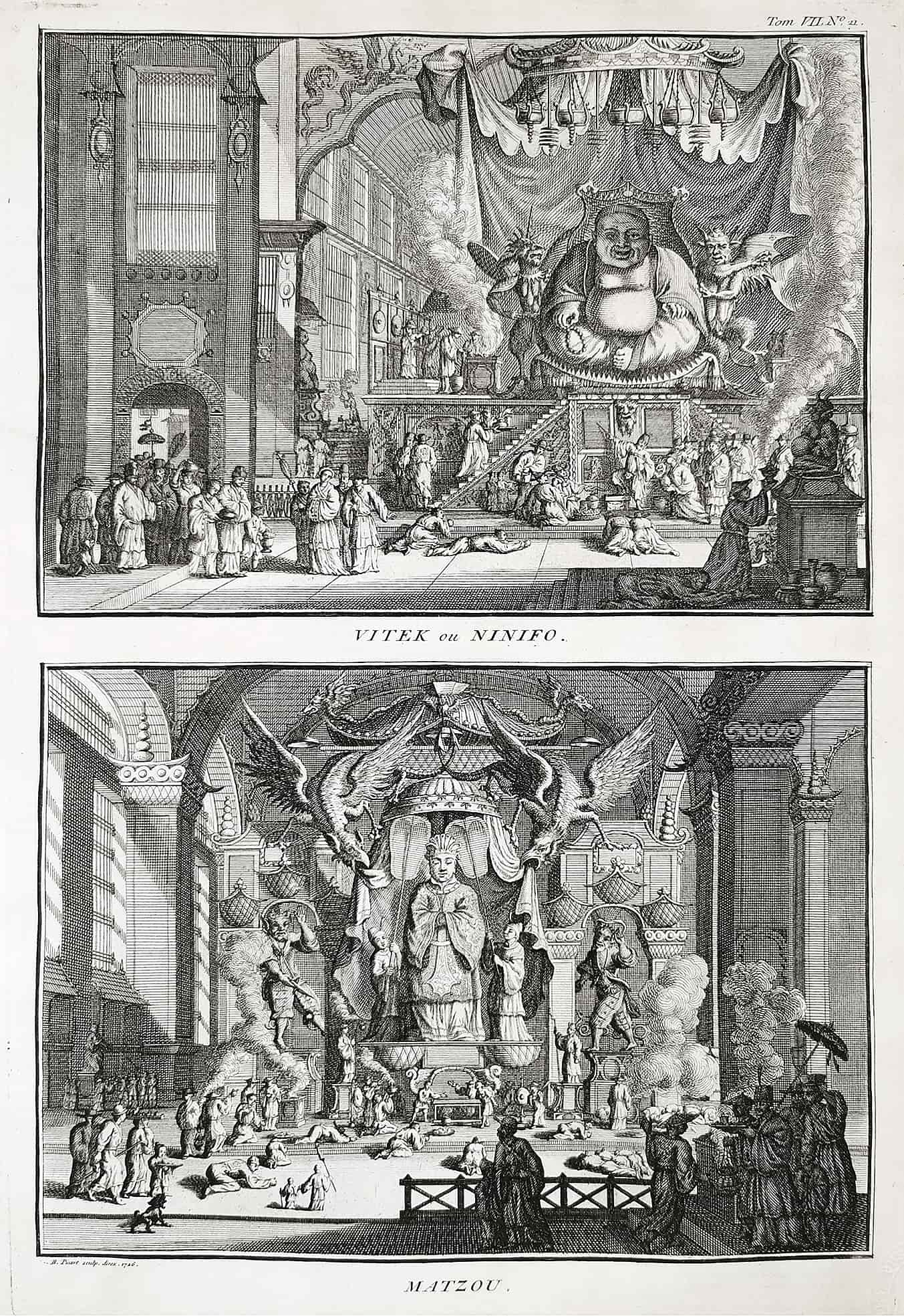 Picart was a French artist and engraver. He was born in Paris and died in Amsterdam. He moved to Antwerp in 1696, and spent a year in Amsterdam before returning to France at the end of 1698. After his wife died in 1708, he moved to Amsterdam in 1711 (later being joined by his father), where he became a Protestant His most famous work is Cérémonies et coutumes religieuses de tous les peuples du monde. Although Picart had never left Europe, he relied on accounts by those who had and had access to a collection of Indian sculpture.