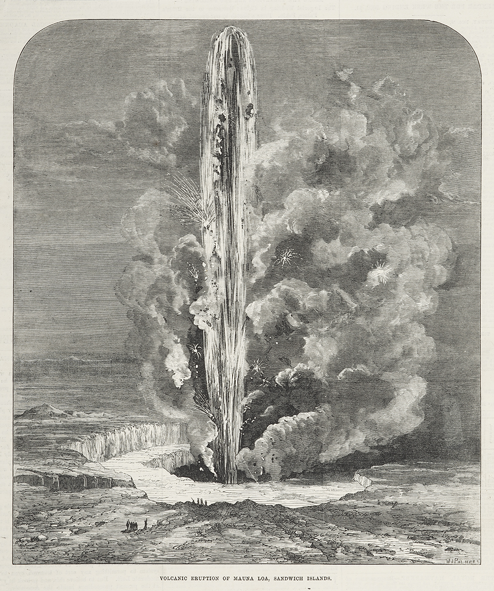 Powerful image of the volcanic eruption of Mauna Loa on the Hawaiian island. From the original edition of The Illustrated London News. References: De Vries, L. History as Hot News: World of the Early Victorians Through the Eyes of the “Illustrated … Read Full Description