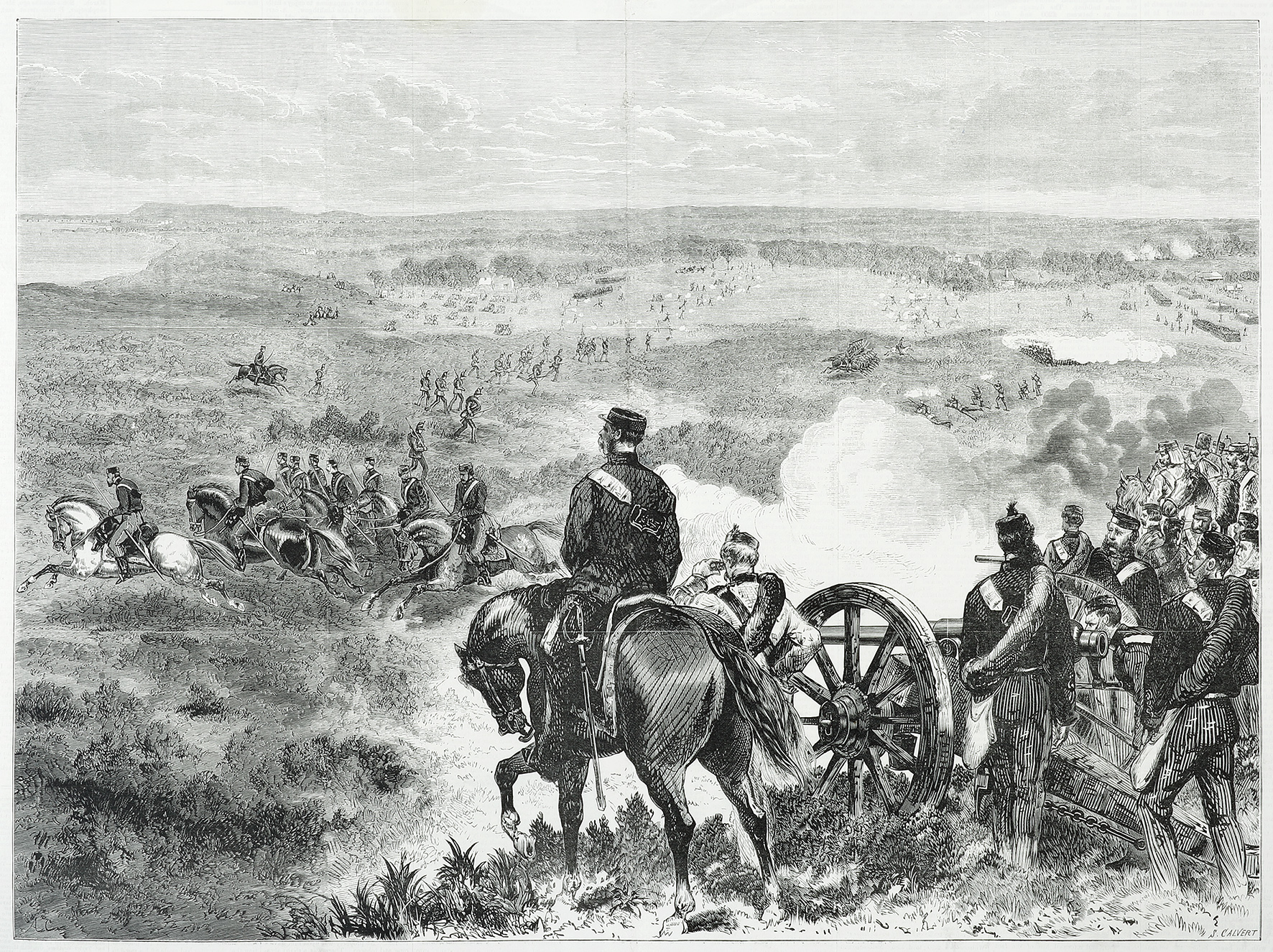 Large colonial engraving depicting the Easter manoeuvres of the Victorian Volunteers. From the original edition of the Illustrated Australian News.
