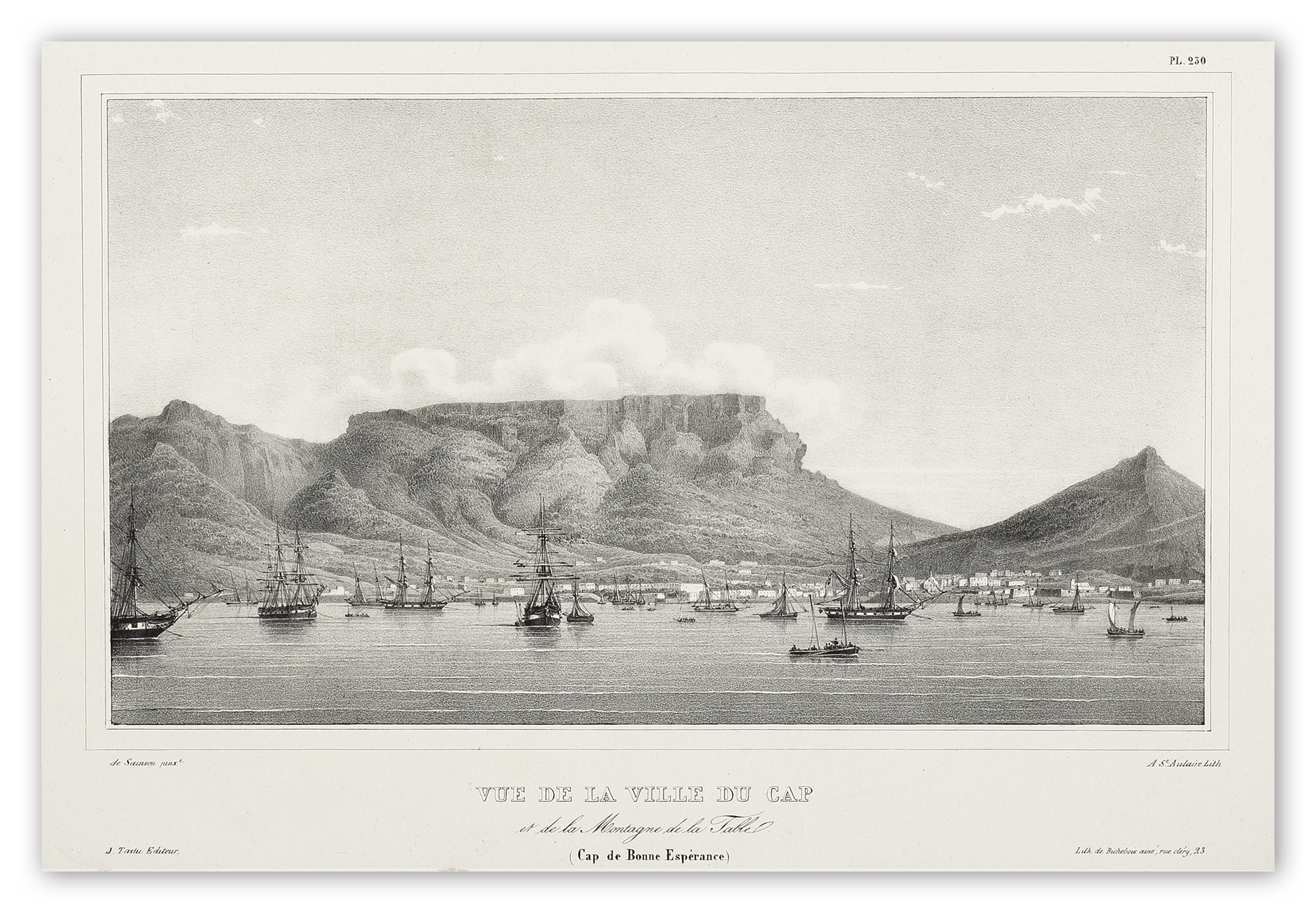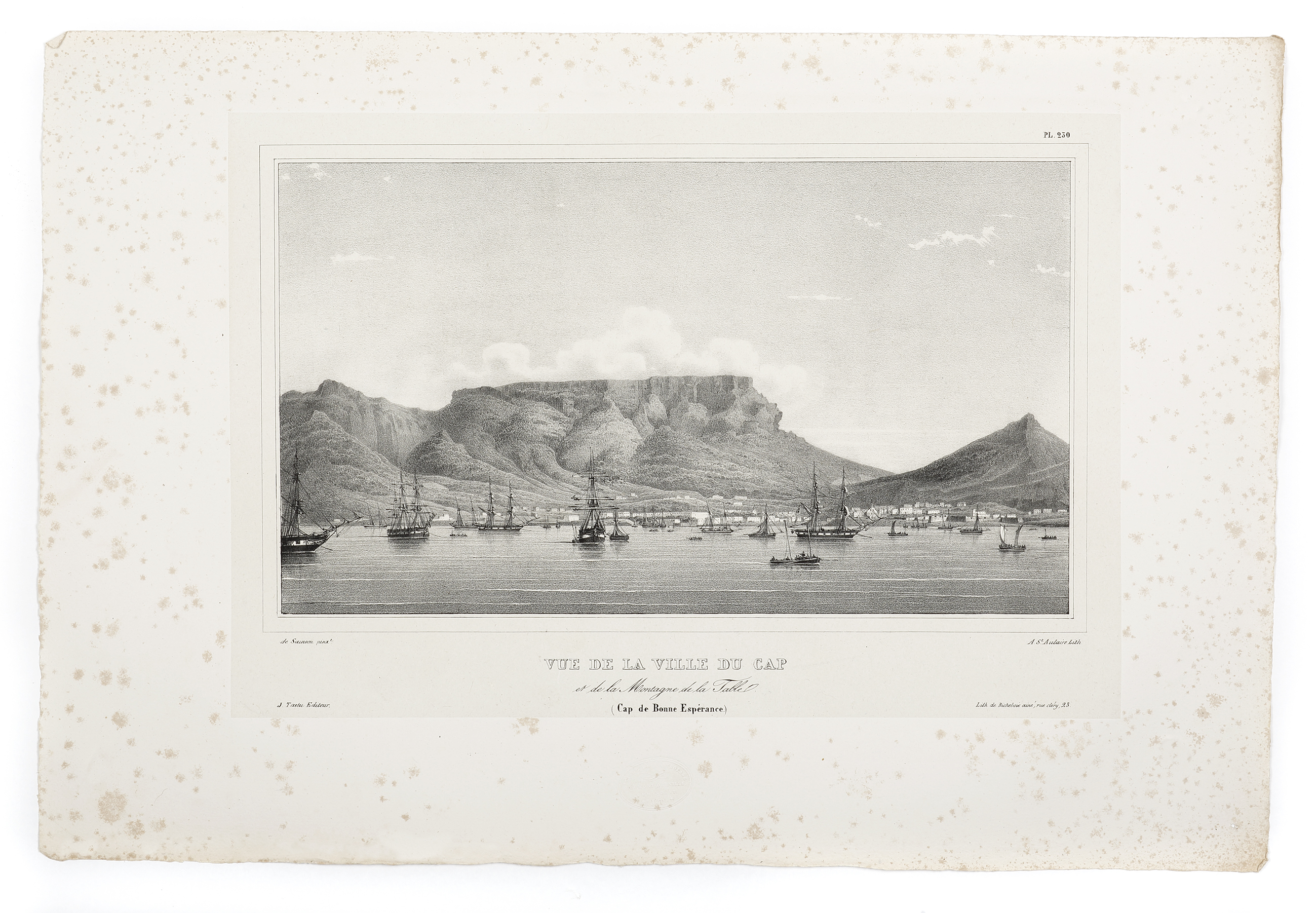 First edition of this superb Chine-collé lithograph on India paper of Table Mountain and Cape Town by Louis de Sainson artist aboard the famous Dumon’t D’Urville voyage of scientific discovery and exploration.