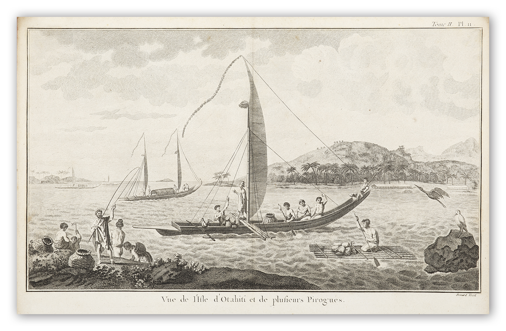 French issue of Sydney Parkinson’s of [A view of the island of Otaheite, with several vessels of that island.] from Cook’s first voyage accounts.