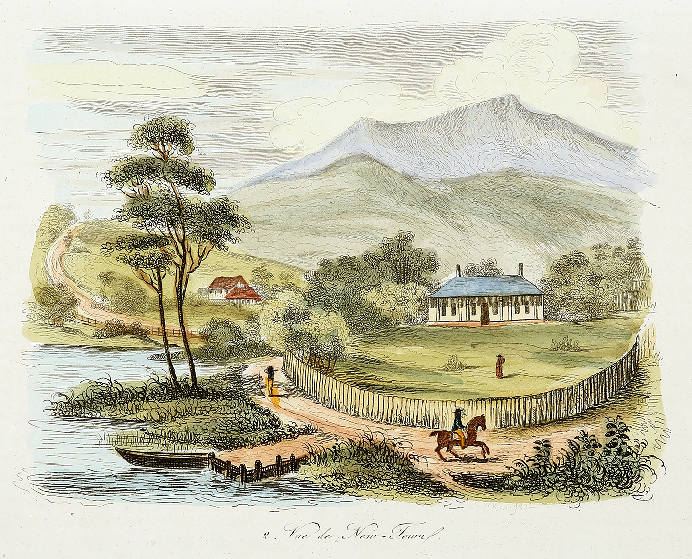 Scarce early c.19th French engraving of a view in Newtown, Hobart, Tasmania.