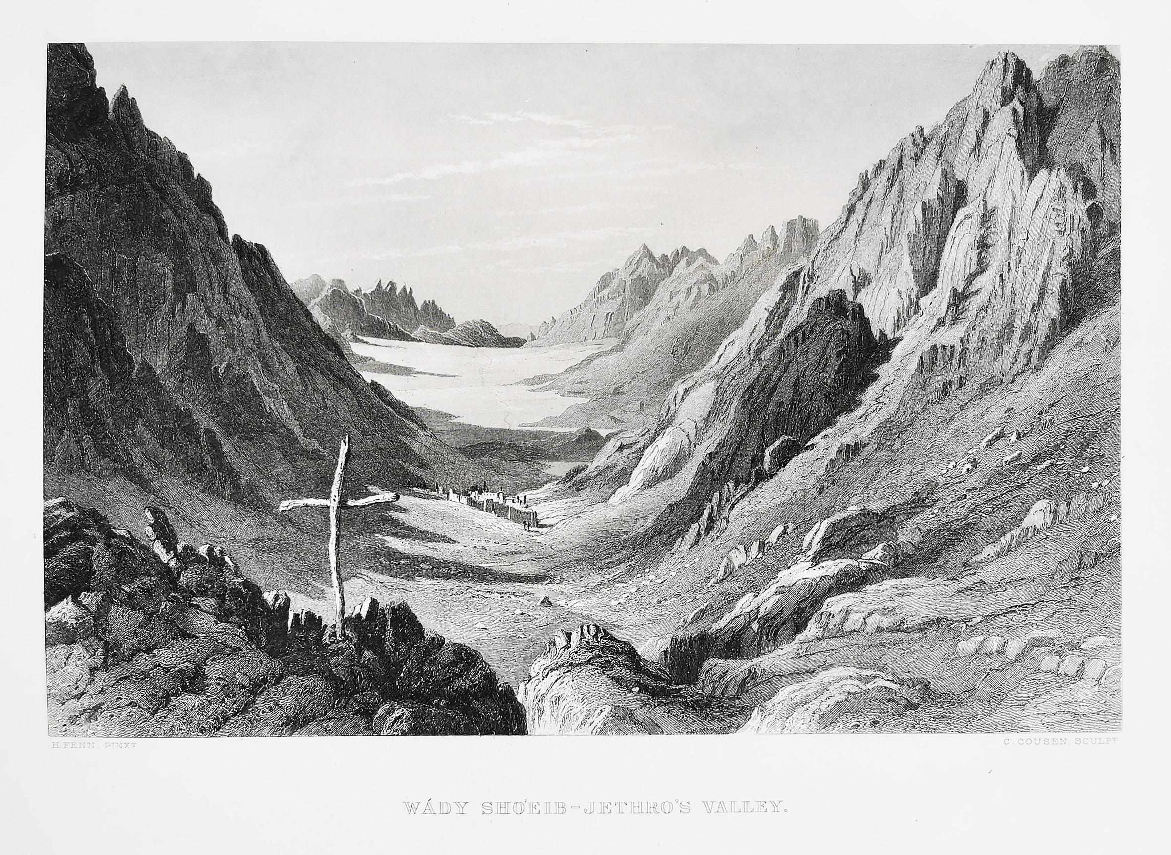Fine engraving of Wadi Shueib Arabic for the Jethro Valley in Jordan.
