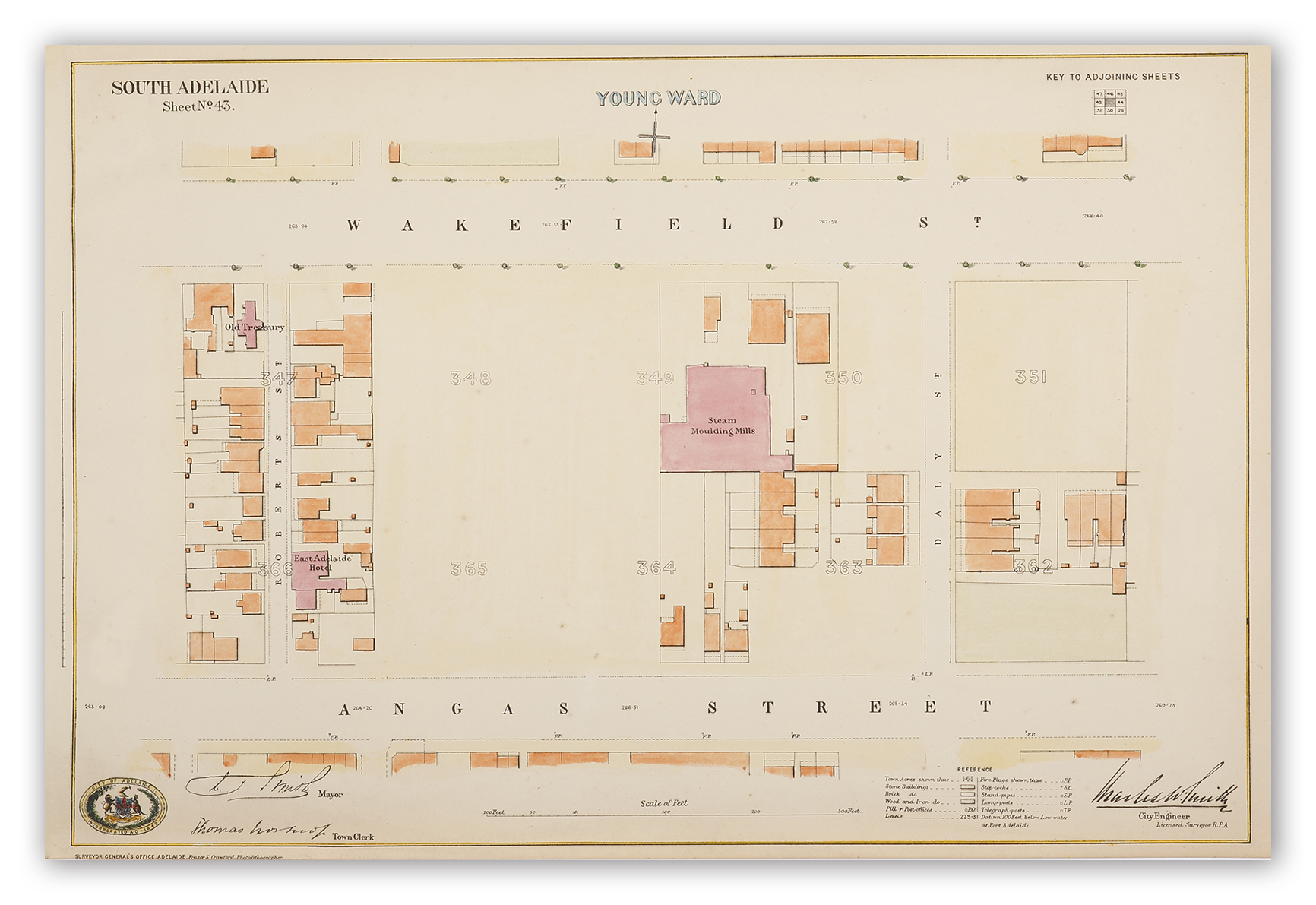 Very detailed plan of Adelaide extending from Wakefield Street to Angas Street by Charles William Smith.