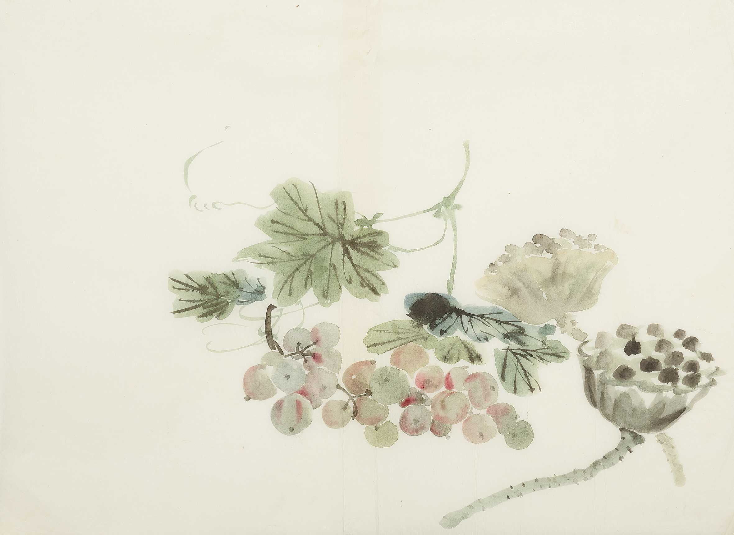 Beautiful and delicately drawn unsigned C17th original Japanese botanical watercolour.