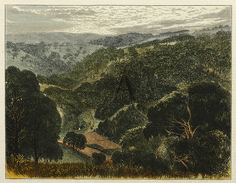 Very rare engraving of Waterfall Gully from the original edition of the Australasian Sketcher.