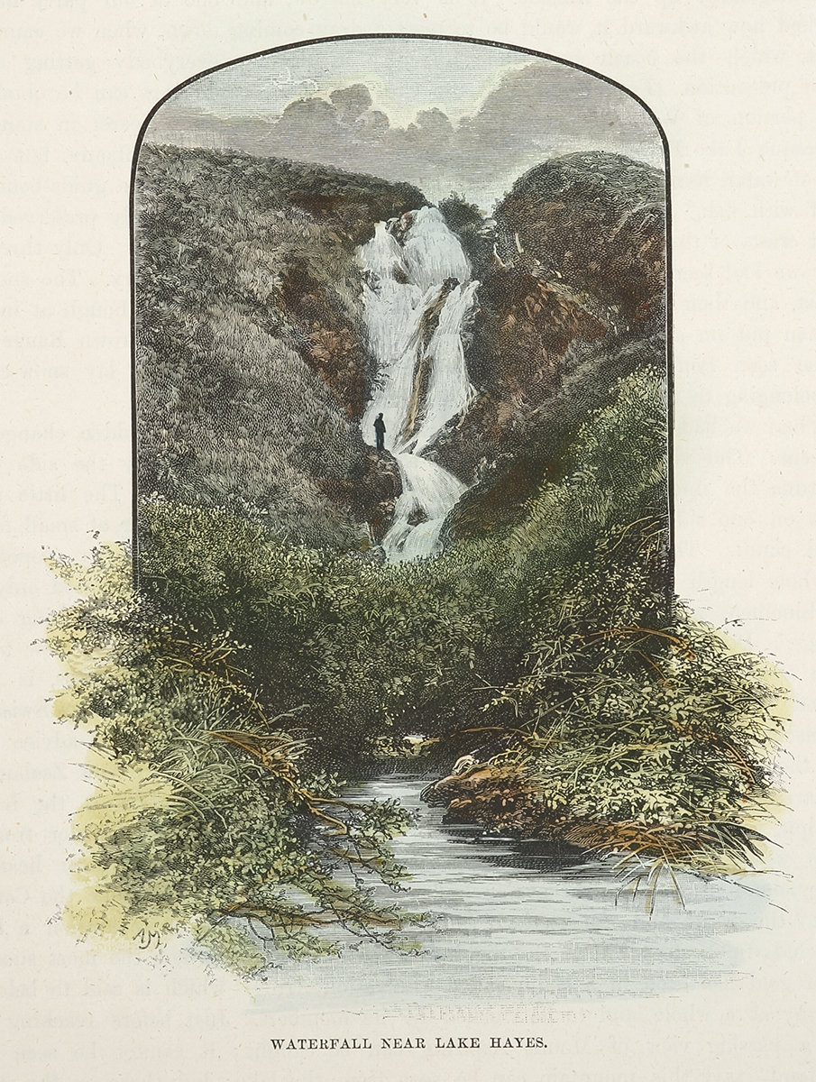 Scarce engraving of Lake Hayes on New Zealand’s South Island.