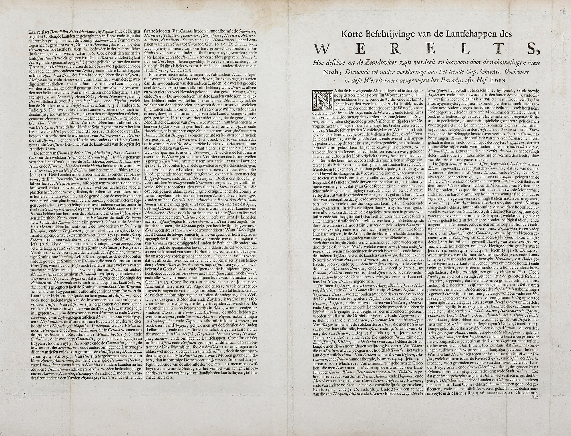 Two circular diagrams depicting the Ptolemaic and Copernican theories of the solar system are depicted at top and bottom between the hemispheres. This map was based on the second world map prepared by Nicolaas Visscher for insertion in a Dutch bible published by Pieter en Jacob Keur.