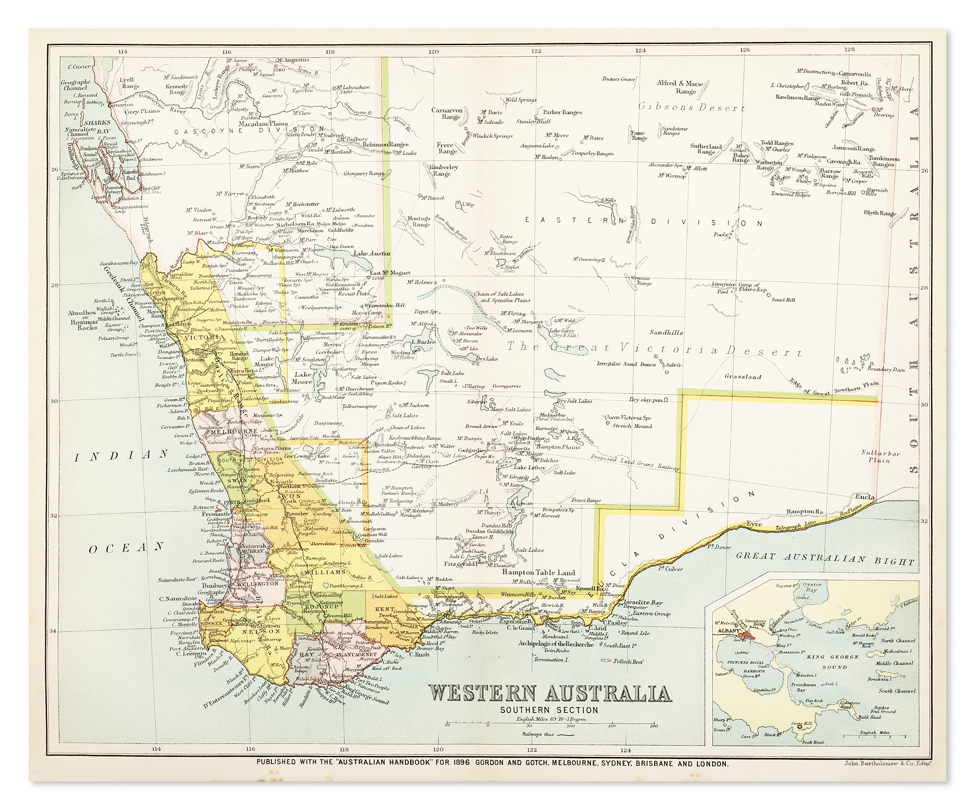 Detailed map of Western Australia with counties shown and an inset of Albany at lower right.