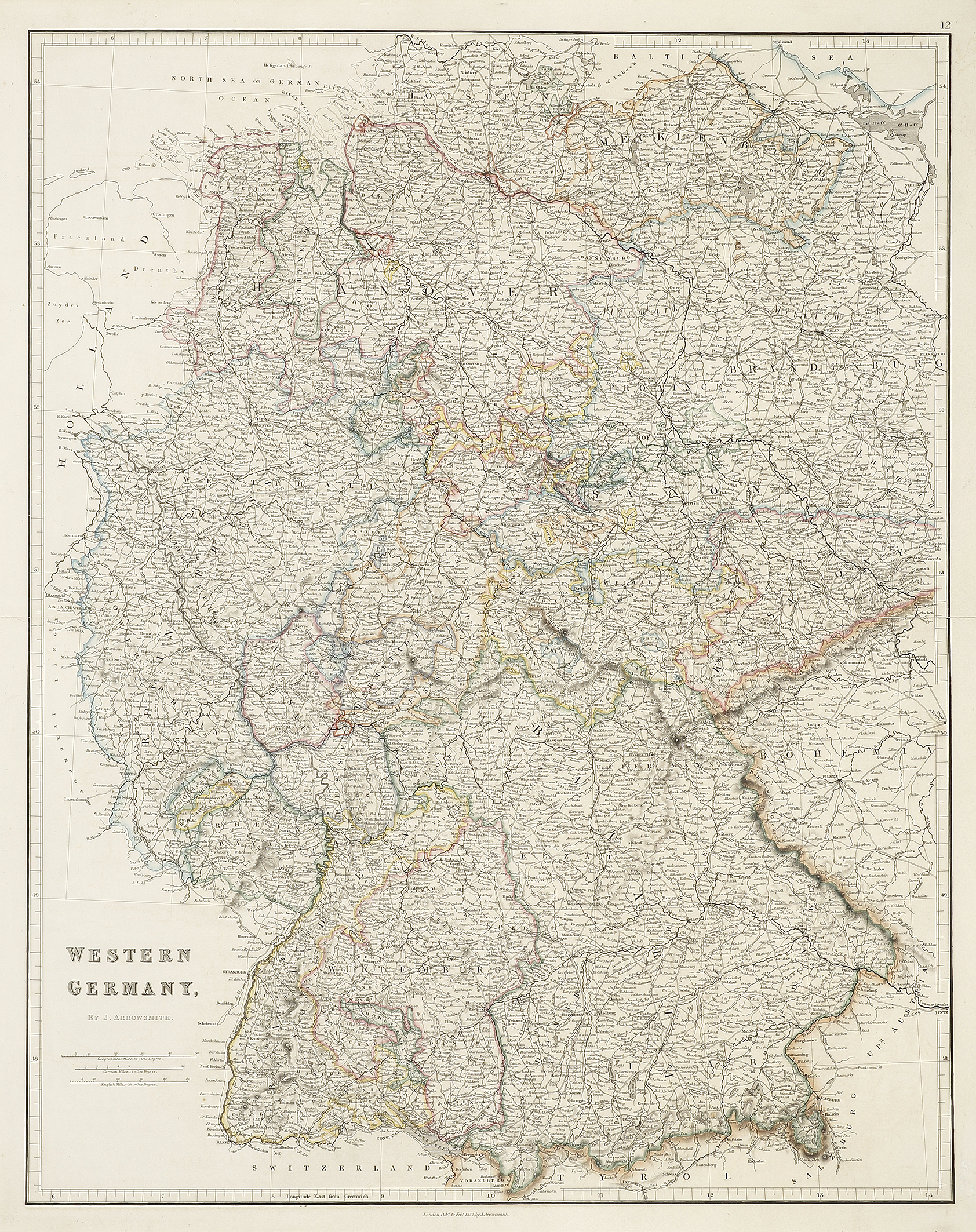 First edition dated 15th Feb. 1832 published 1834, of Arrowsmith’s map of western Germany.
