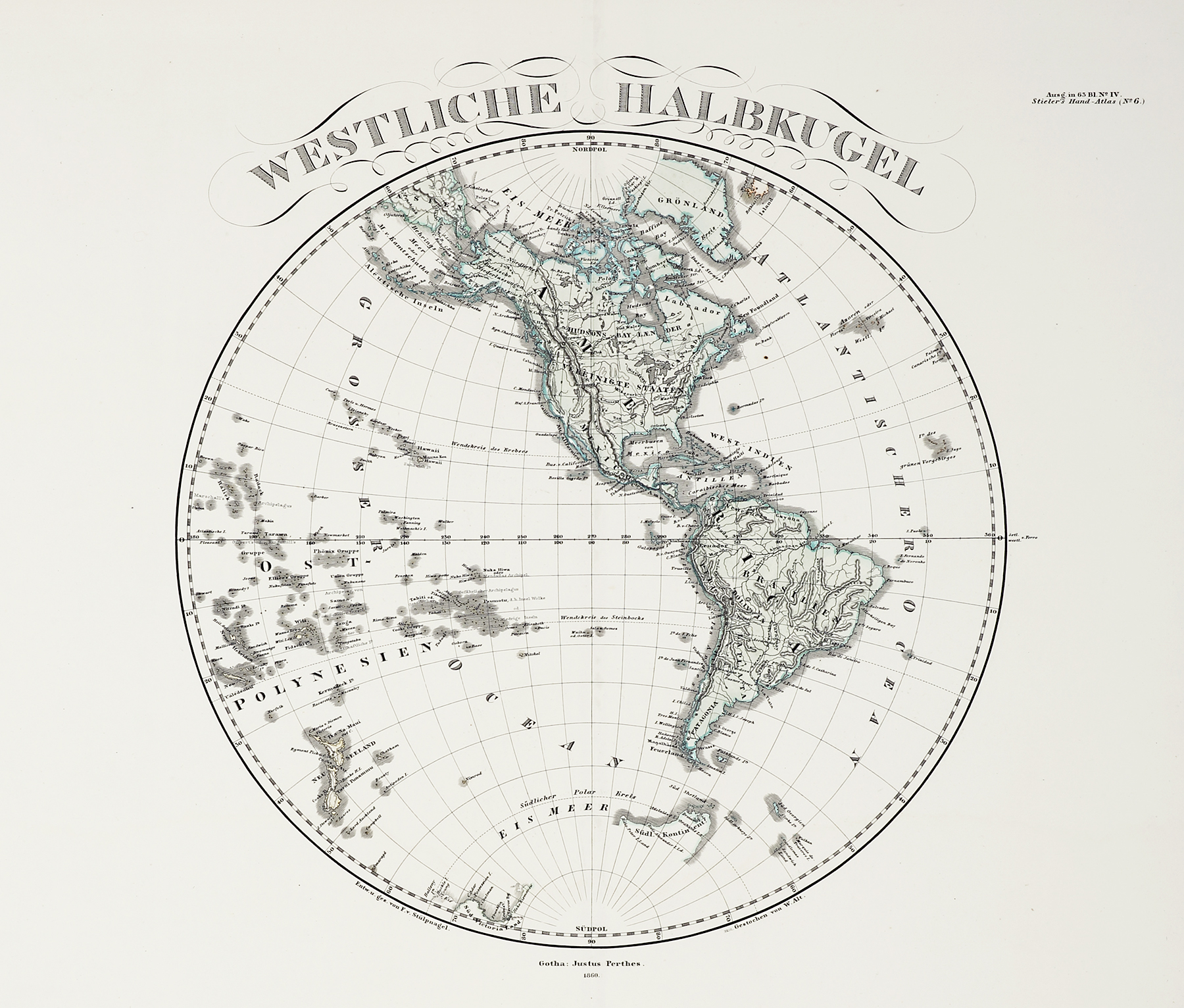 Very detailed German c.19th map of the Americas from the 3rd edition of Stielers Handatlas.